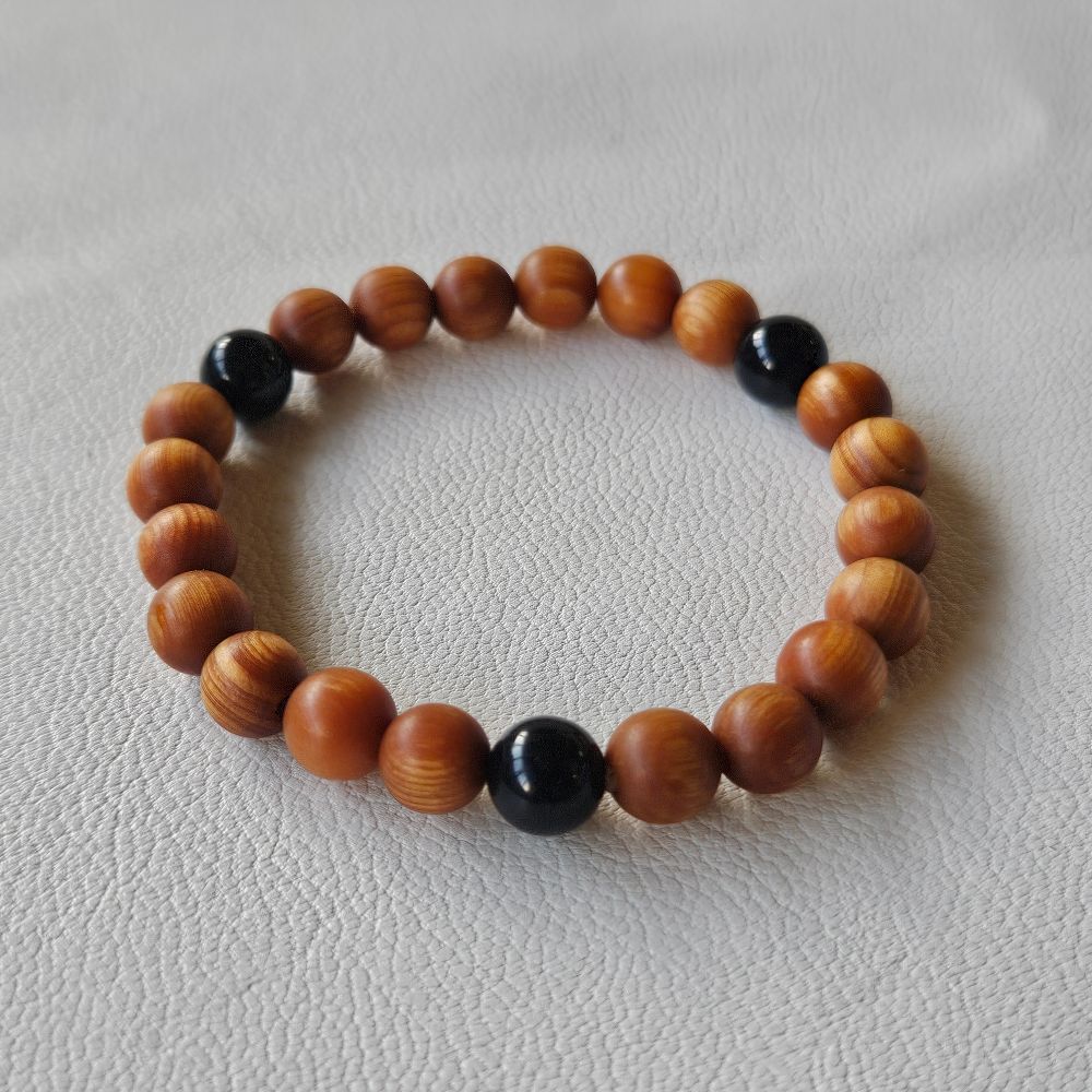 おいせ清め石&檜(ブラウン) ブレスレット 内径約16cm ルース約8mm【※保証書付】 ...はご好評をいただいており、追加生産を行なっております。通常より発送までにお時間をいただいております。