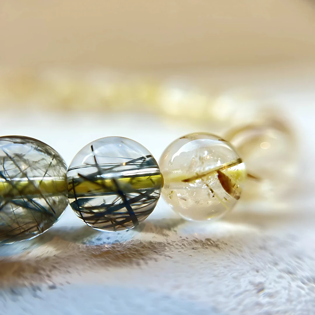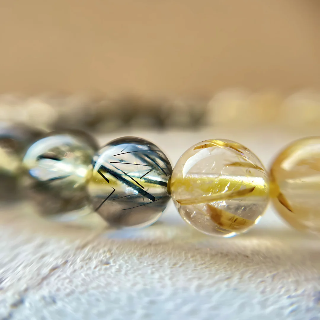 ルチルクォーツは、結晶化するときにルチルを内包物(インクルージョン)として取り込んだ水晶のこと。