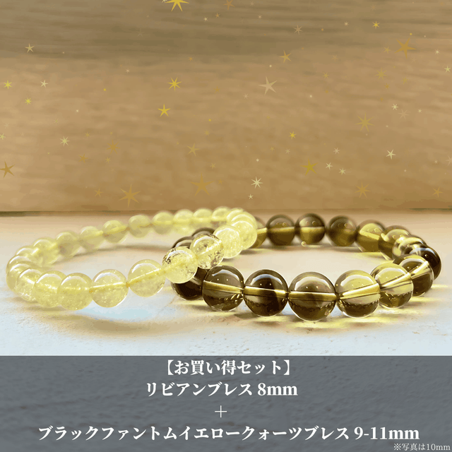 【お買い得】ブラックファントムイエロークォーツ ブレスレット 9-11mm + リビアンブレスレット 8mm セット