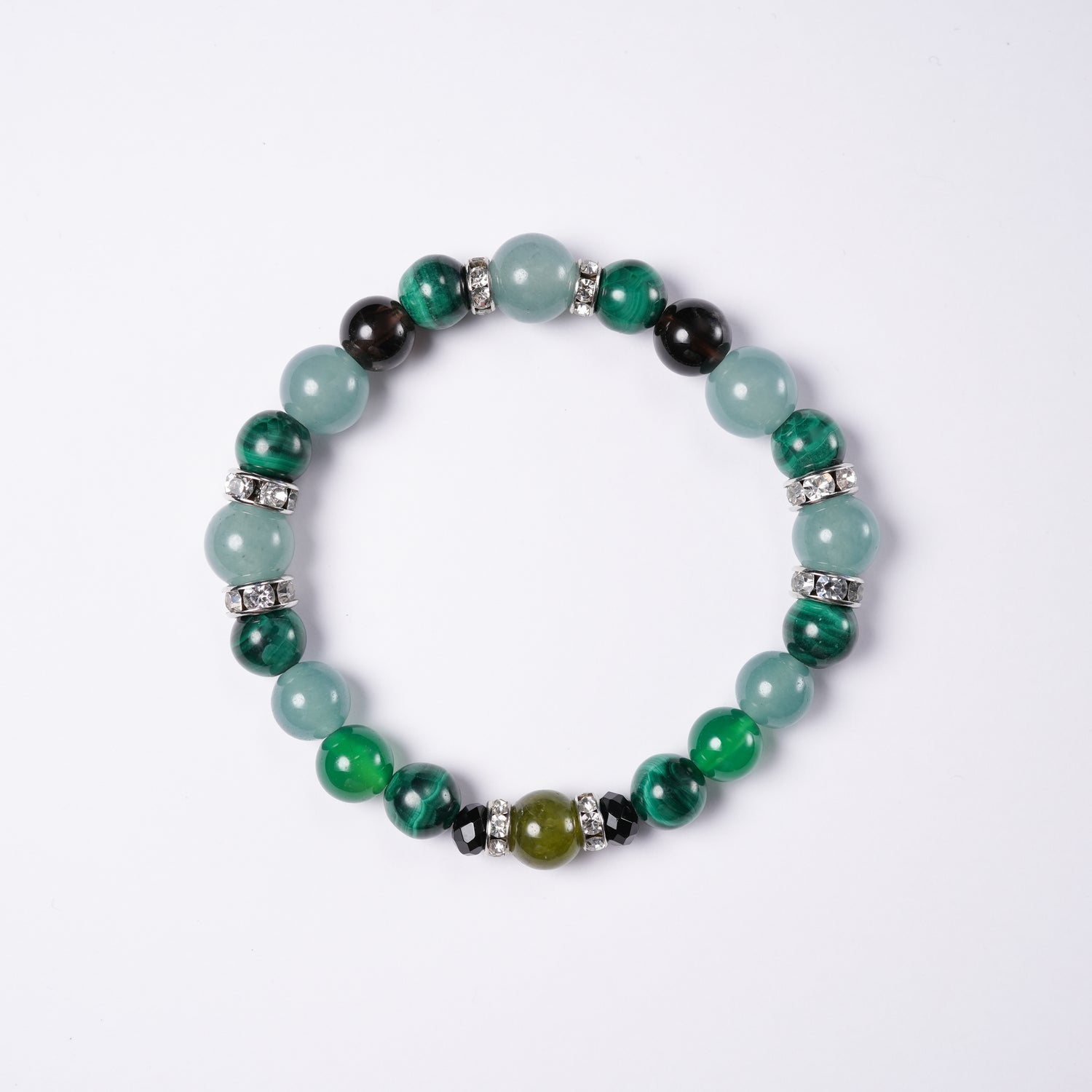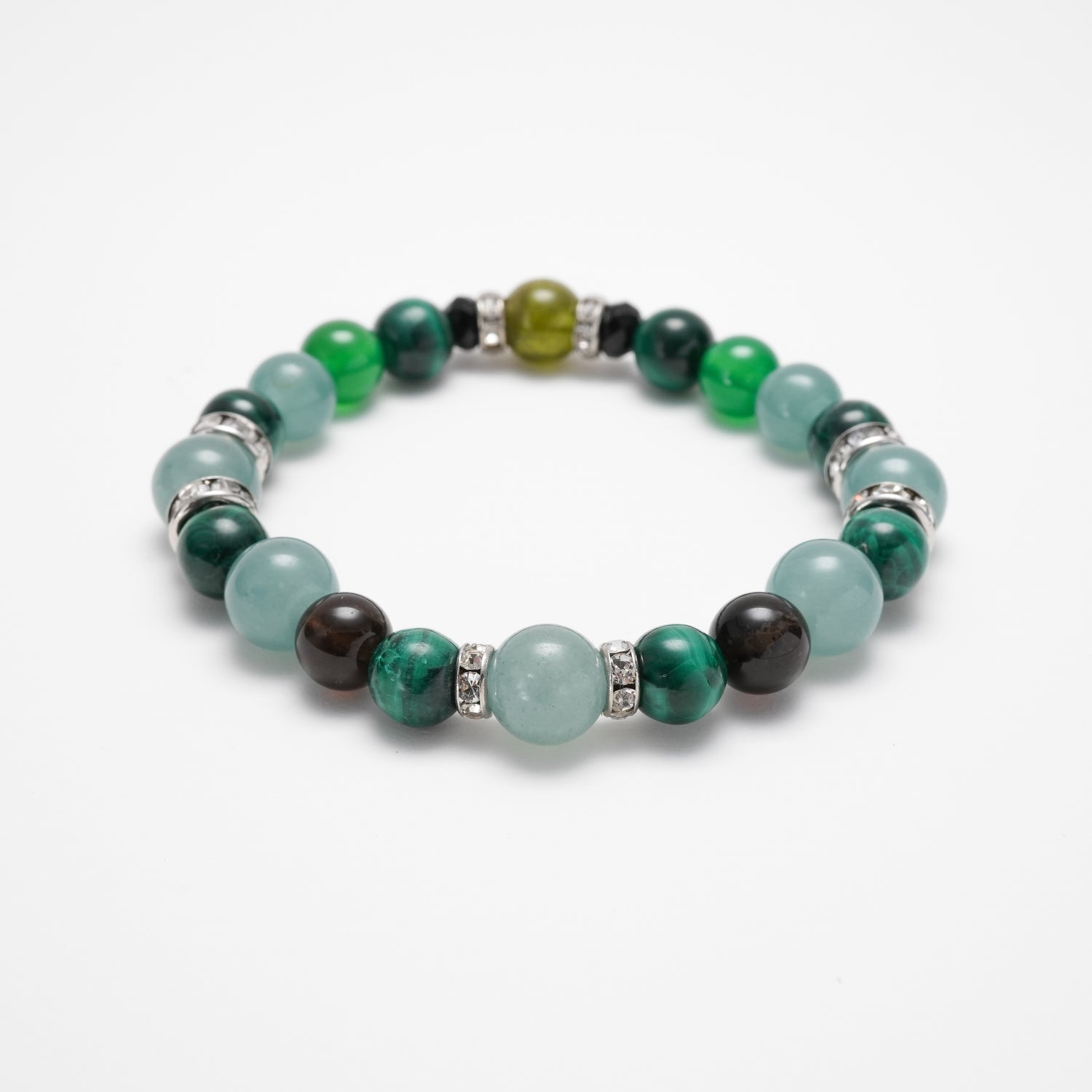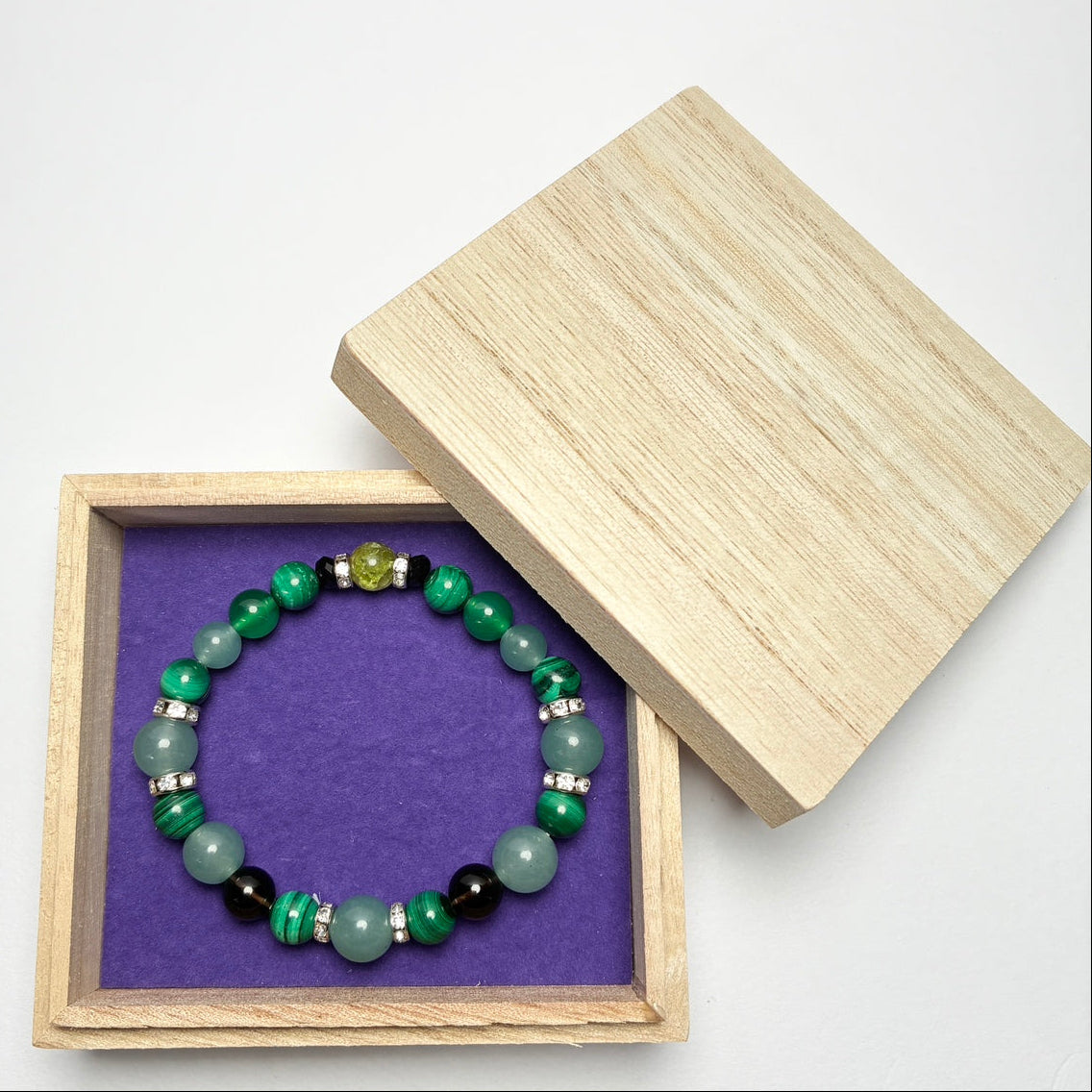 外では明るく元気でも、内側では疲れやすい金星人に、心の安定守りを与える翡翠と、前向きなエネルギーを呼び込むペリドット。このブレスは、人間関係で揺れるあなたを守りながら、本来の輝きを保つサポーターになります。