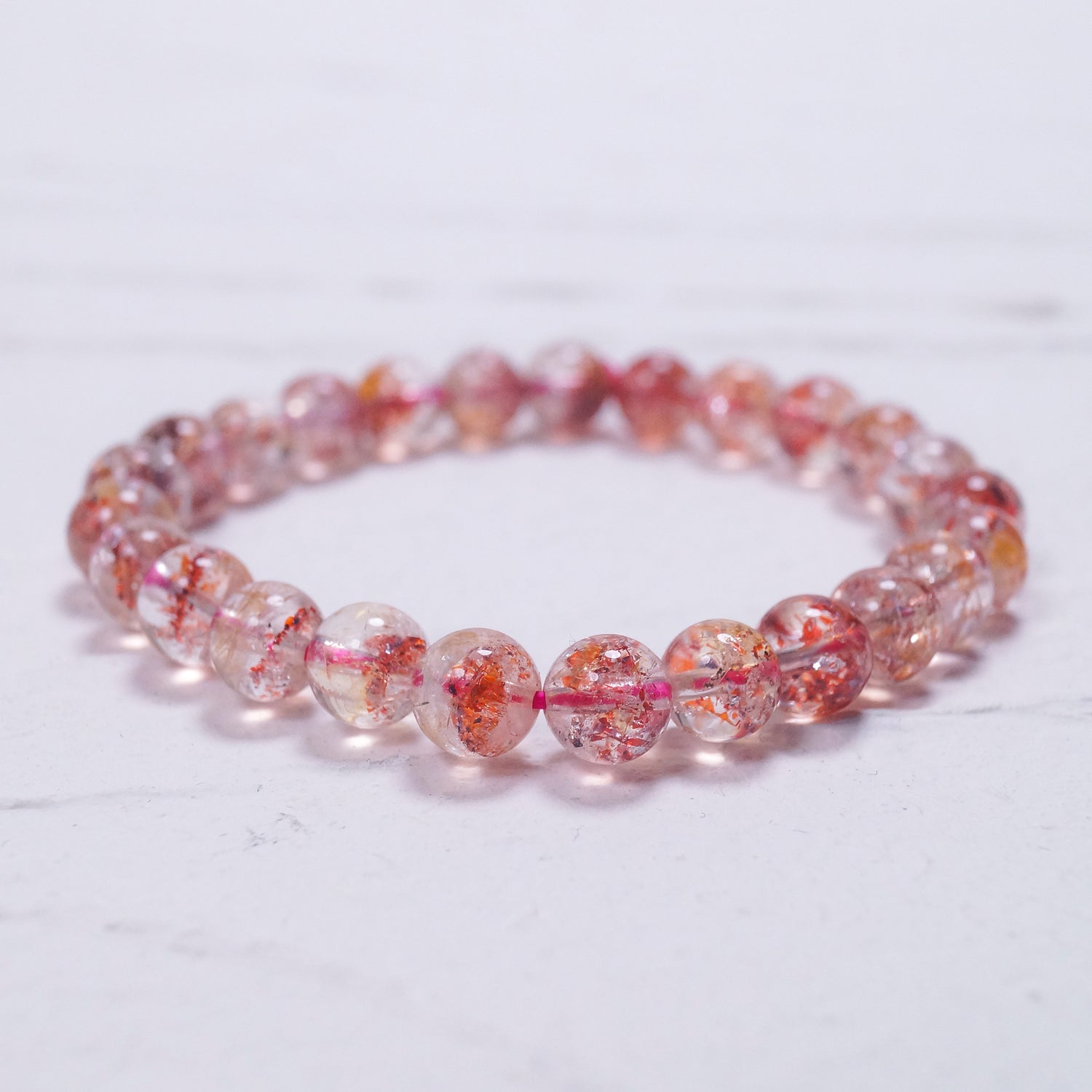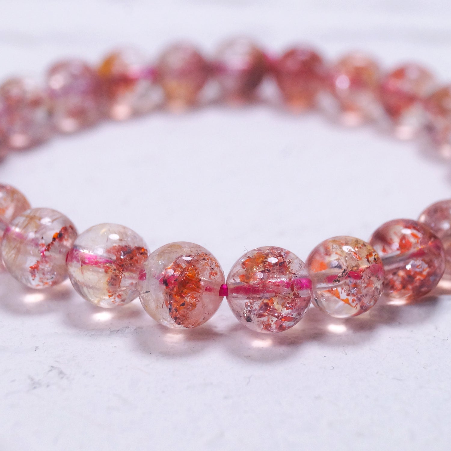 4.レッドスーパーセブン ファイヤークォーツ ブレスレット 7mm 内径14.5cm 産地:ブラジル