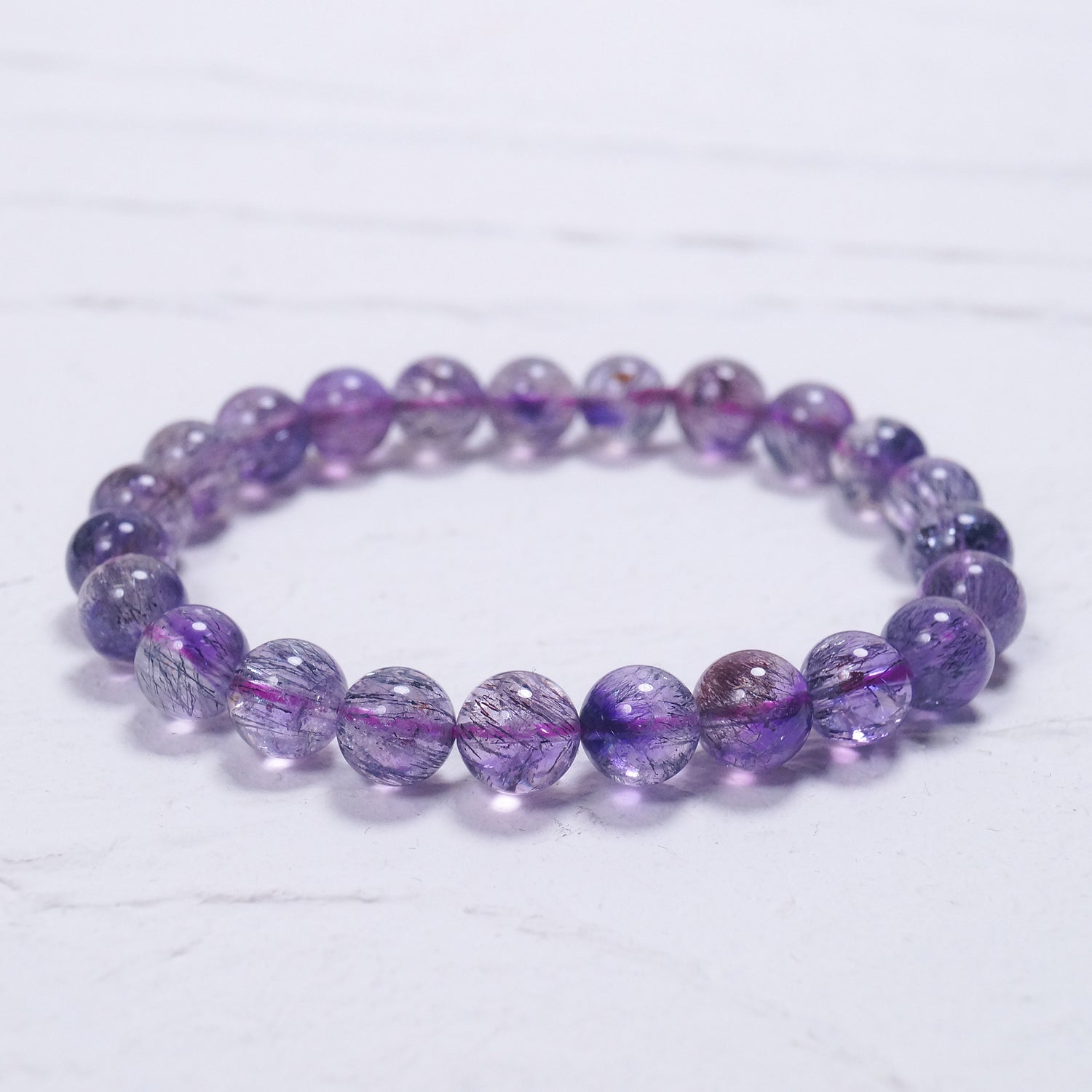 3.アメジストスーパーセブン ブレスレット 8mm 内径15.5cm 産地:ブラジル