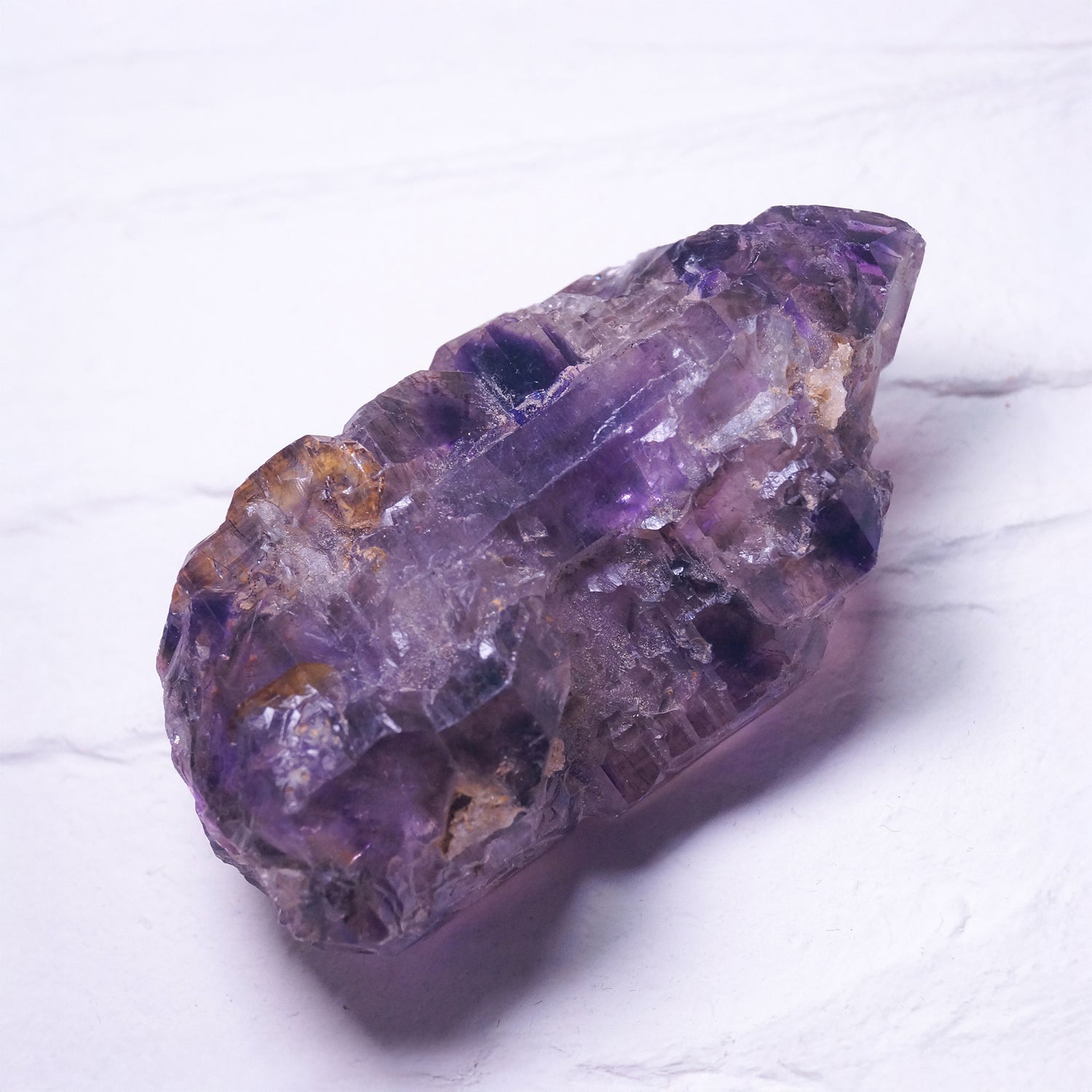 工場より加工前の原石を1つだけ選んで入手しました。表面に現れているレピドクロサイトの輝きとエレスチャル感満載の形状にパワーを感じます。