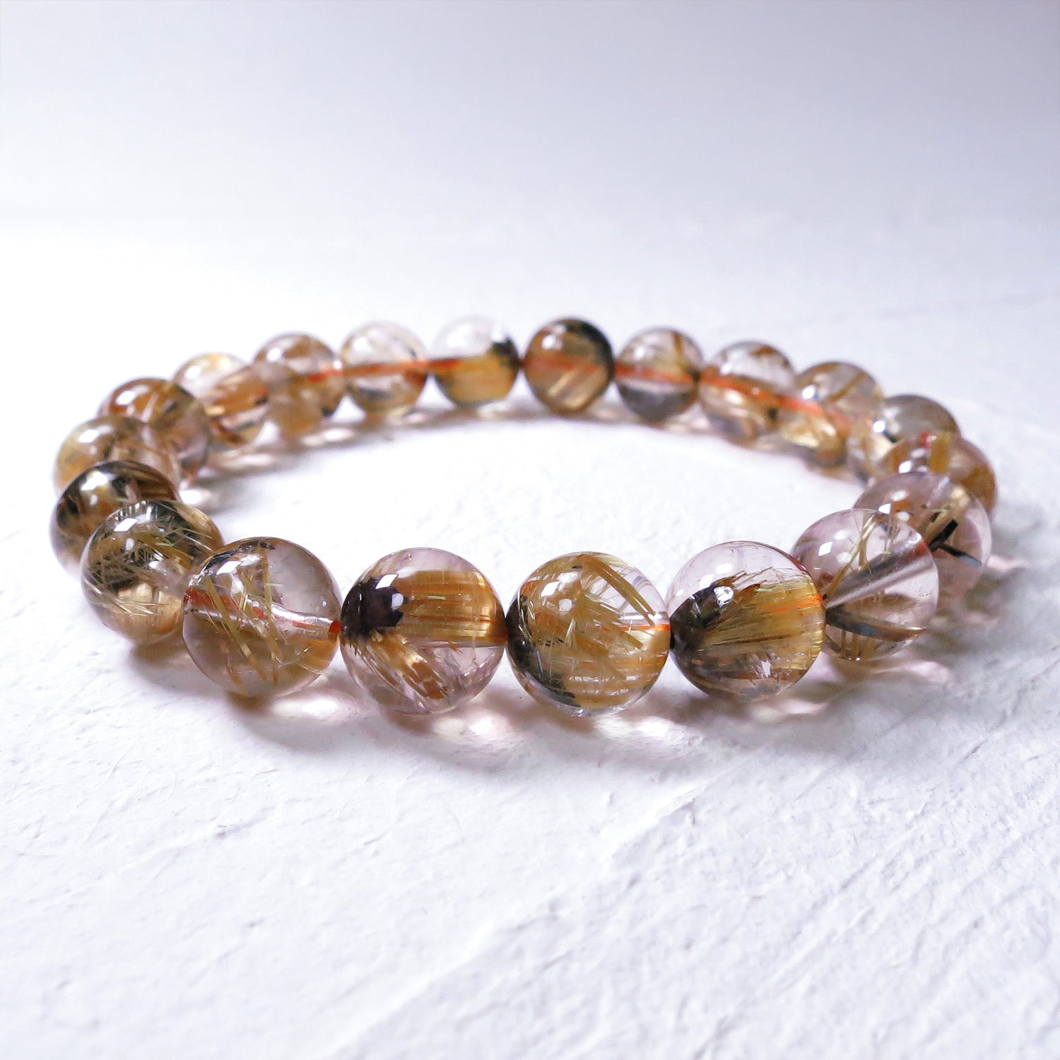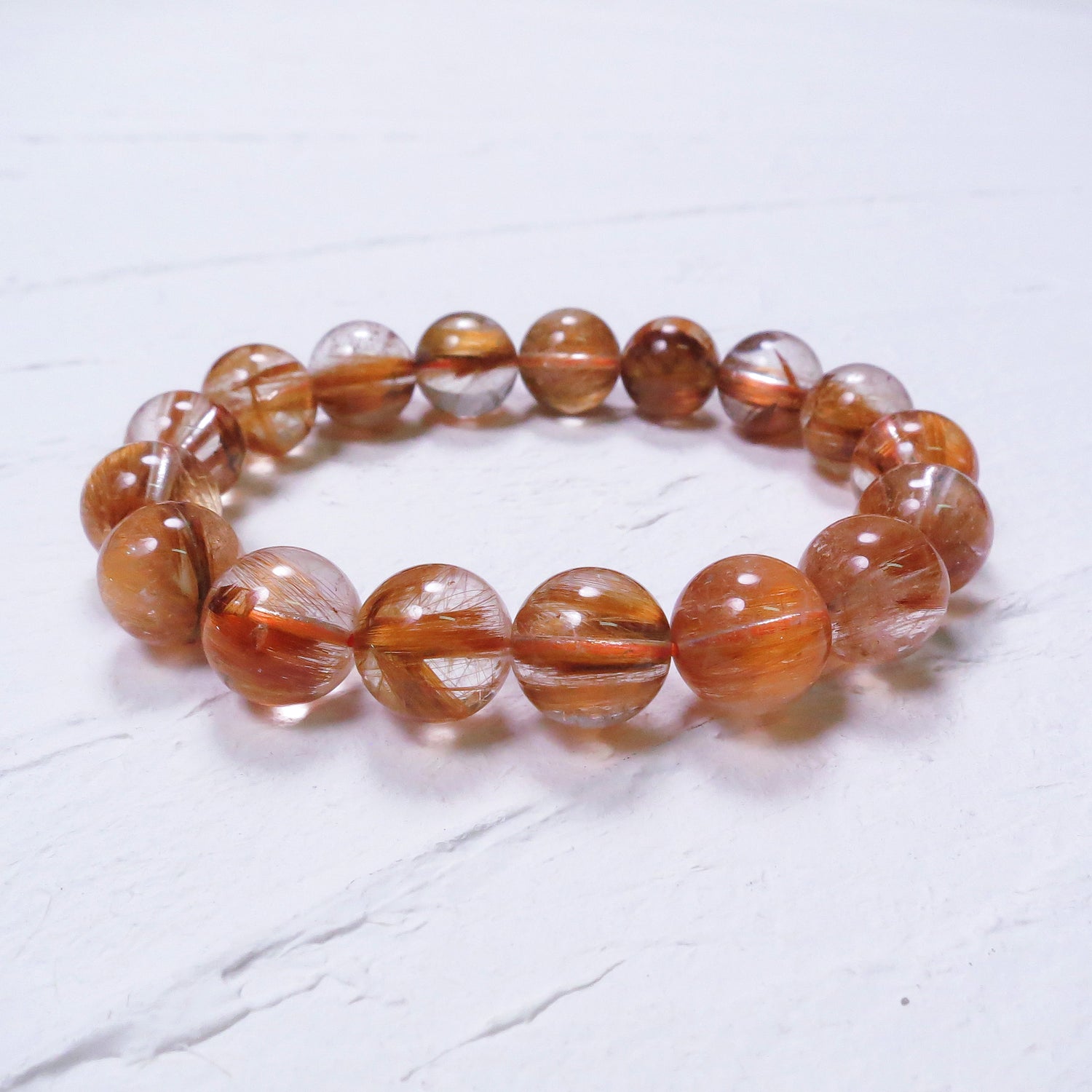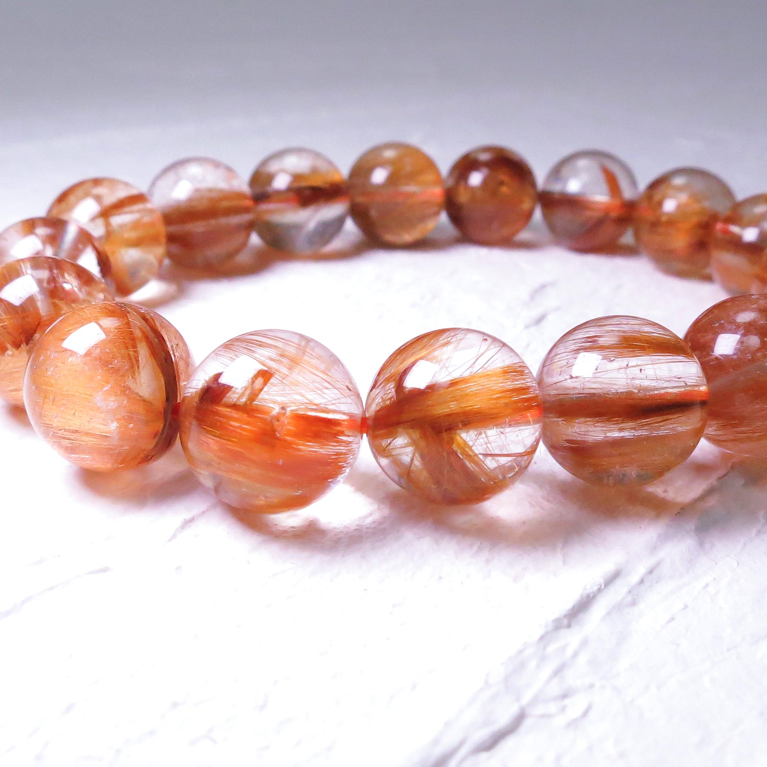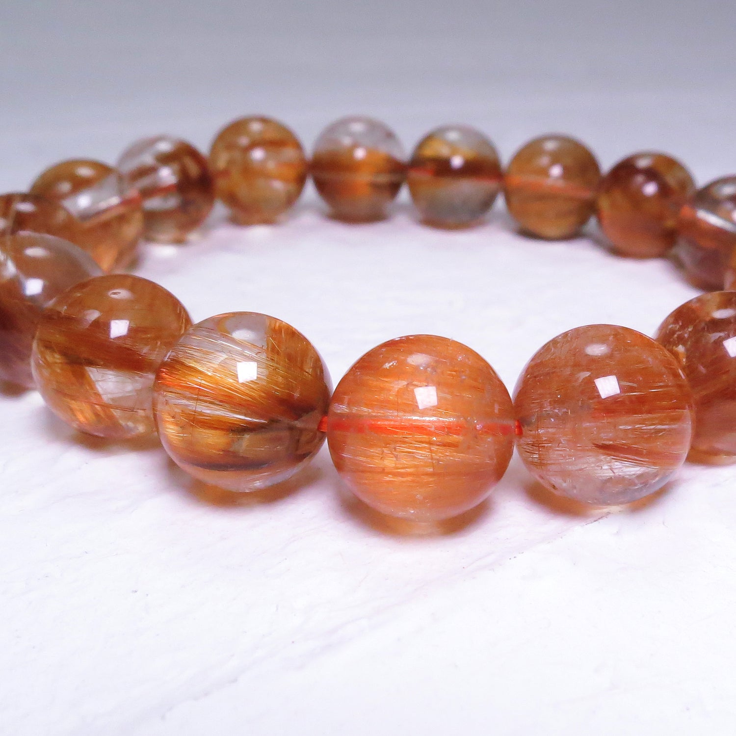 オレンジ名のルチルはあれどキャッツアイが出現するほど同色で針が揃っているのは貴重です。しかも12㎜と存在感があり活力を与えてくれるブレスです。