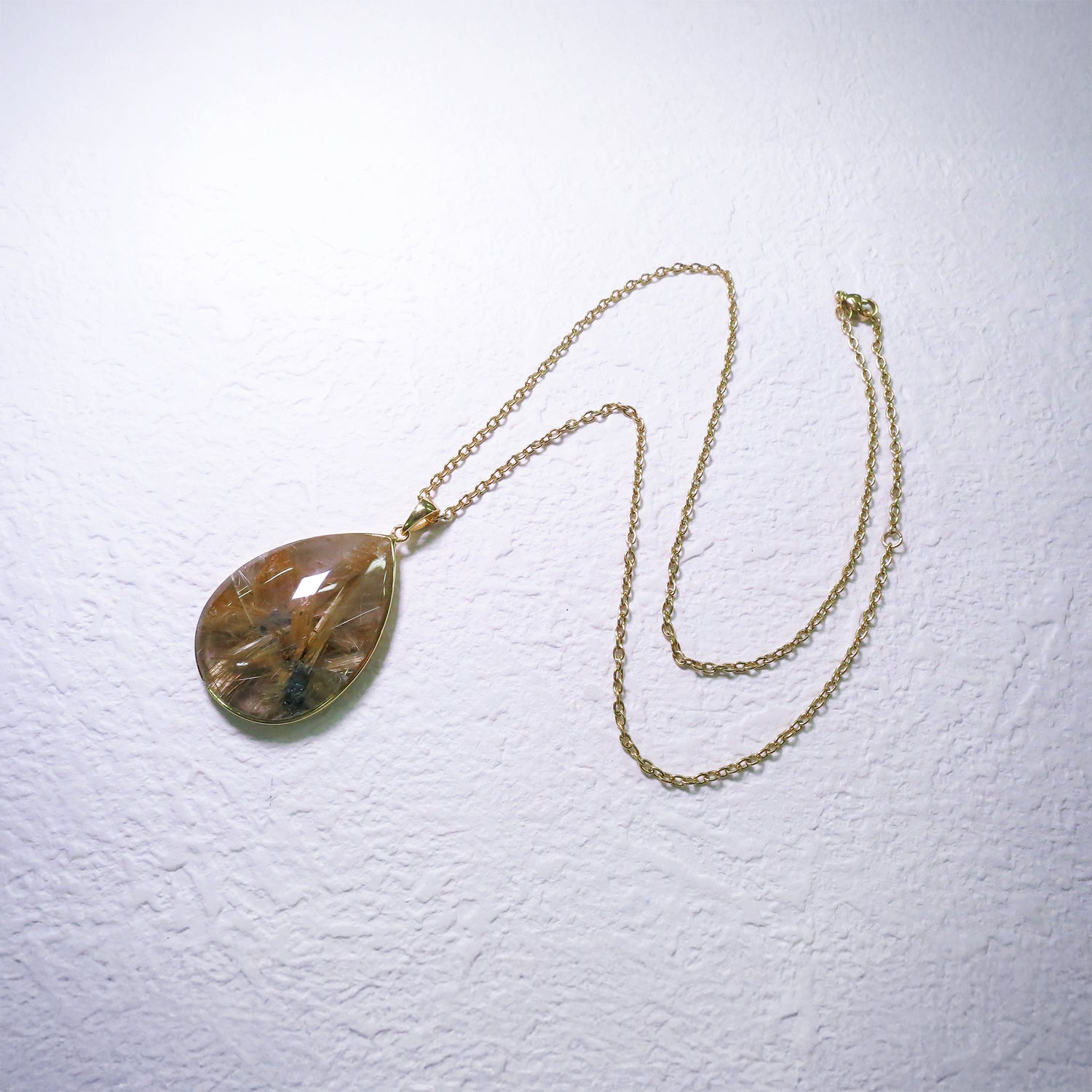 6.太陽放射ルチル シルバートップ 51×30×厚さ10mm ステンレスチェーン 長さ 55cm 産地:ブラジル
