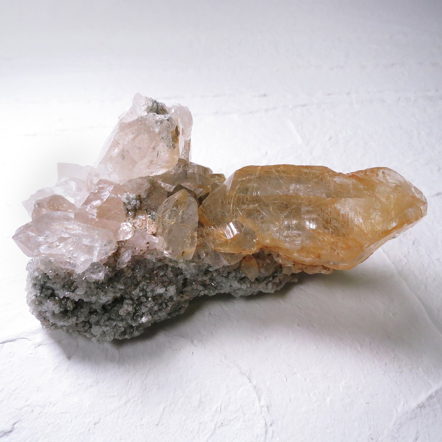 7.マニハール ダブルポイントルチル クラスター 100×65×53 産地:インド