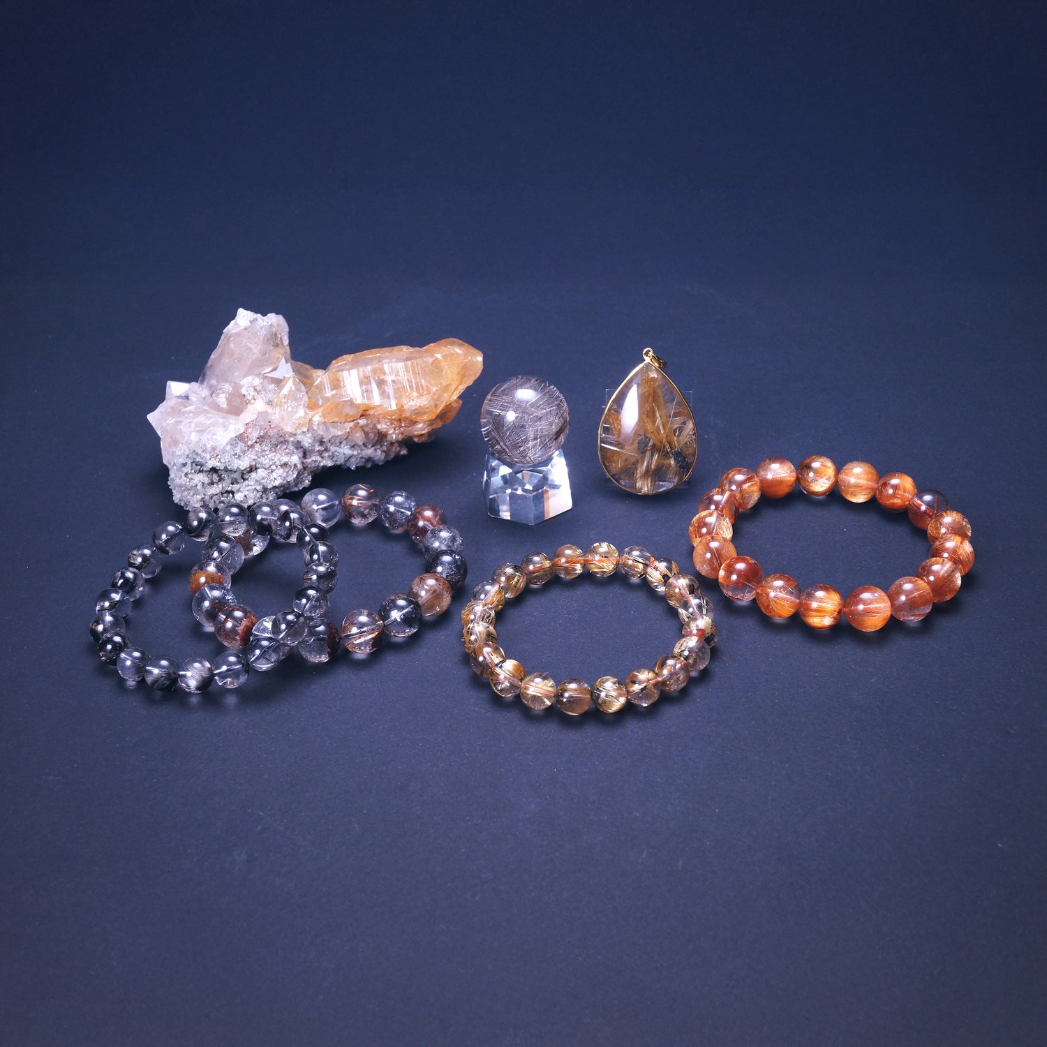 ルチルの中でもレア度が高く上質なものだけを集めました。光(太陽)活力(橙)判断(白金)守護(銀)基盤(庭)の五運気を象徴するそれぞれのカラールチルが、手にされた方の人生を成功へと導きます。