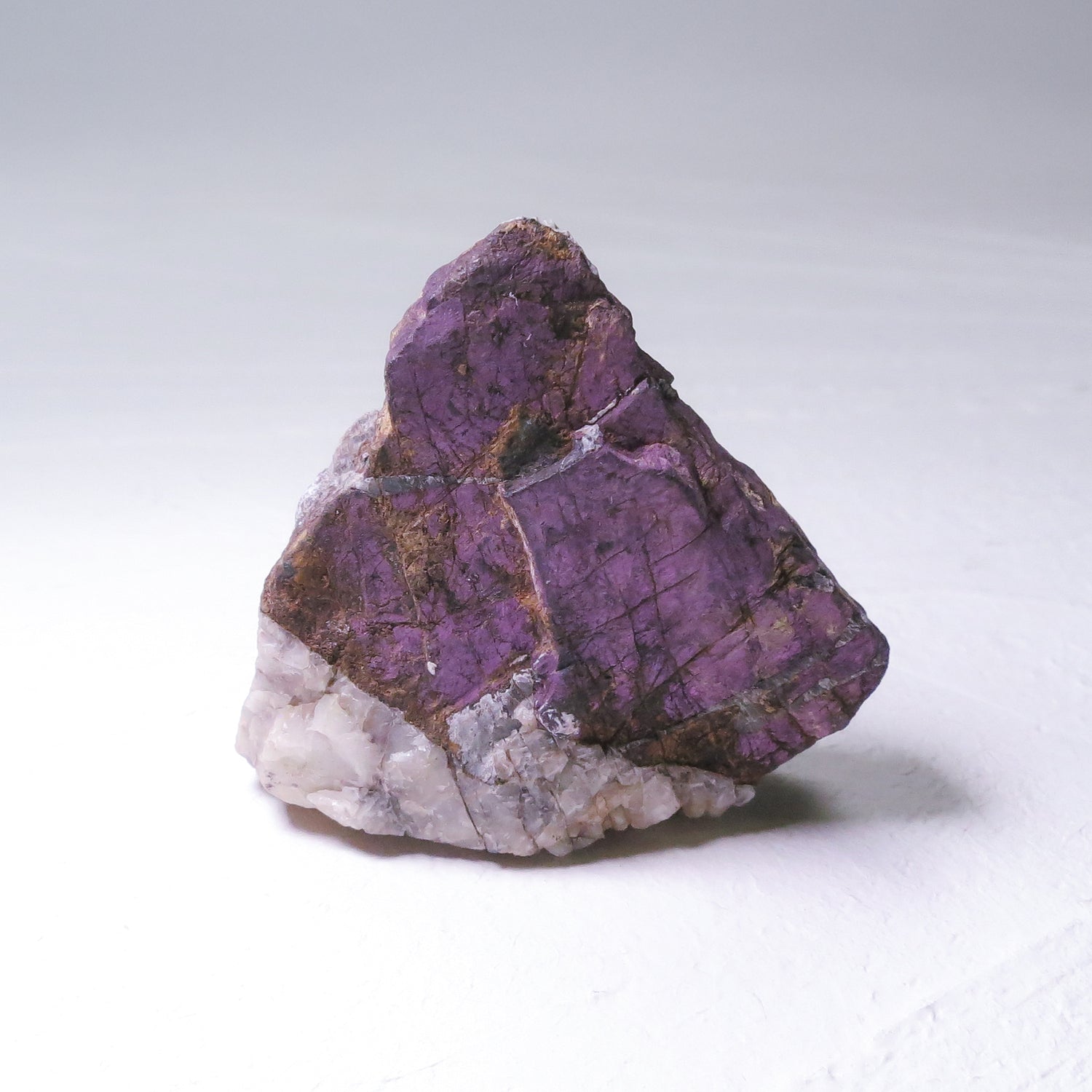 美しいパープルカラーが母岩に現れた、希少なスギライト原石。保護を目的とした表面処理が行われています。