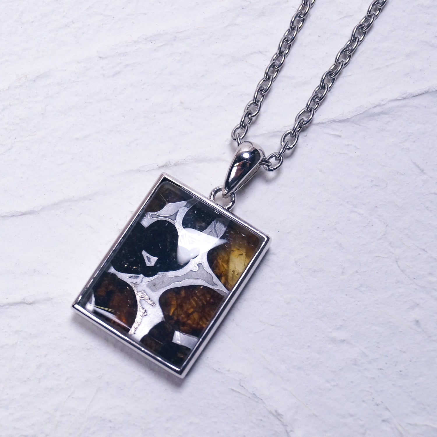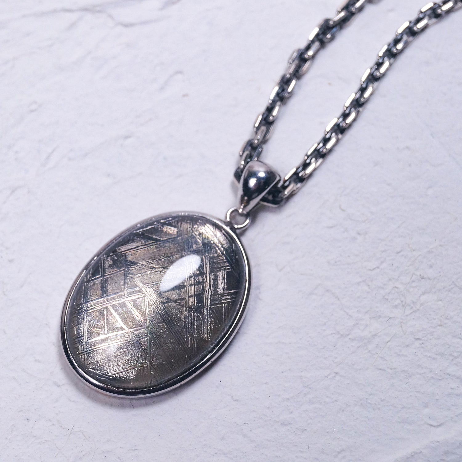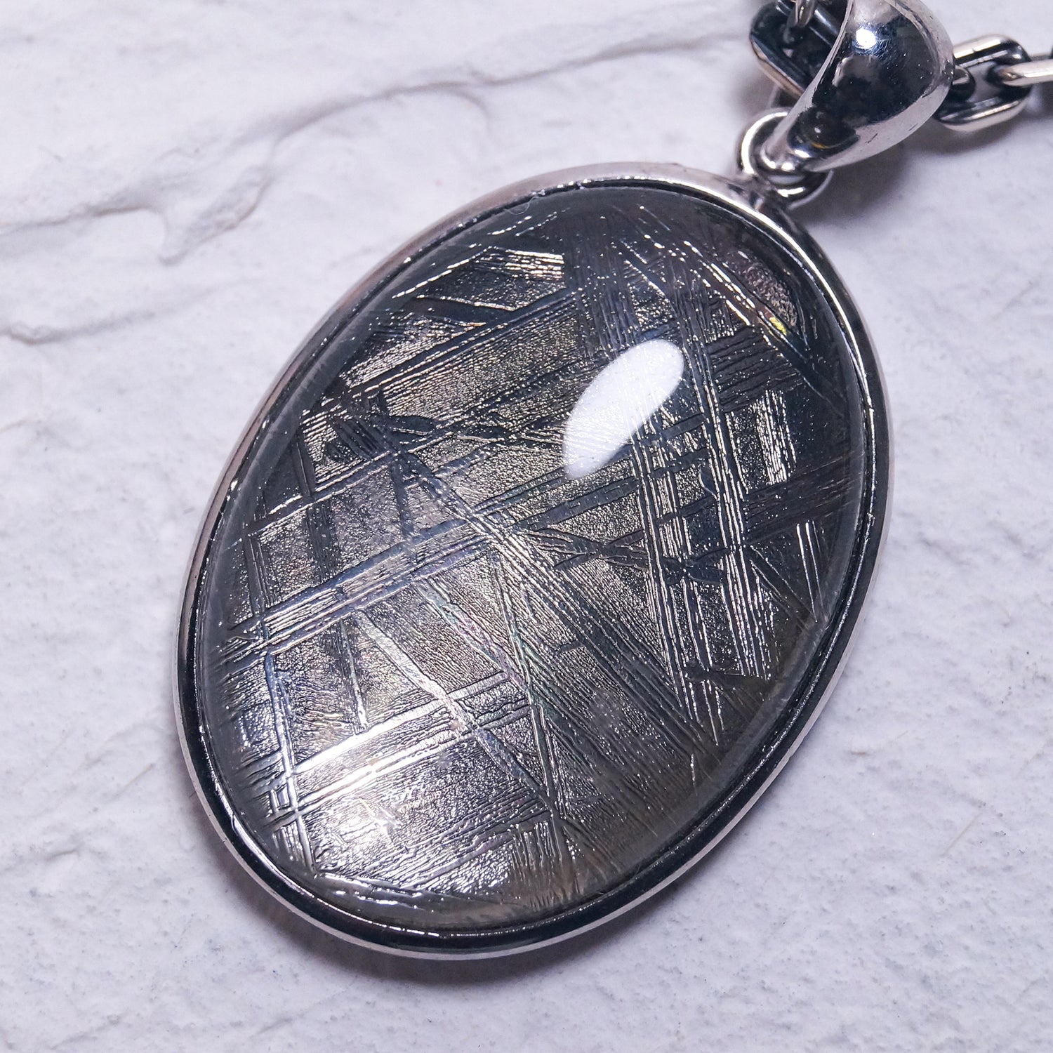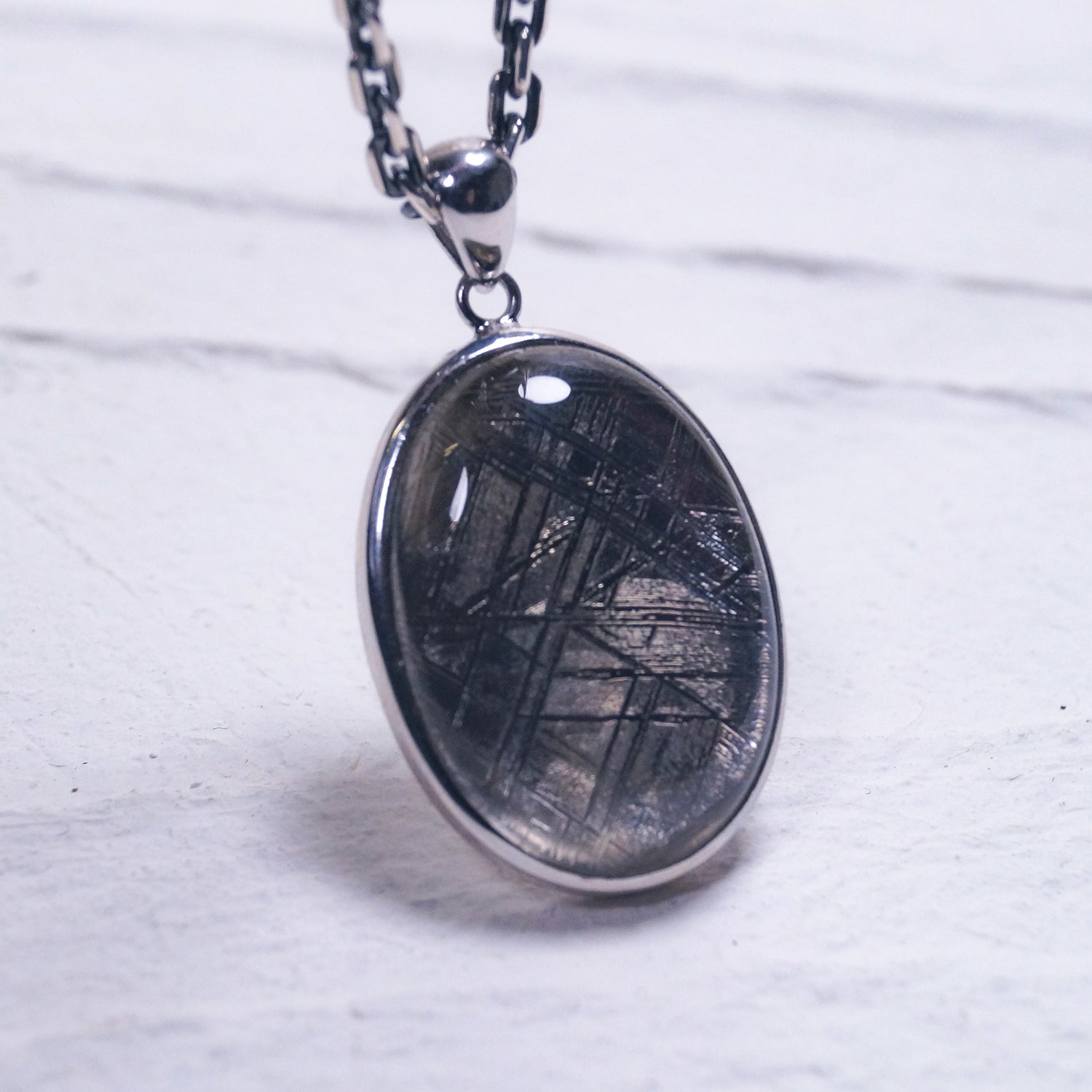 高級腕時計にも採用されているウィドマンシュテッテン構造と呼ばれる地球上にはない金属模様が美しい大ぶりペンダント(シルバーチェーン付き)
