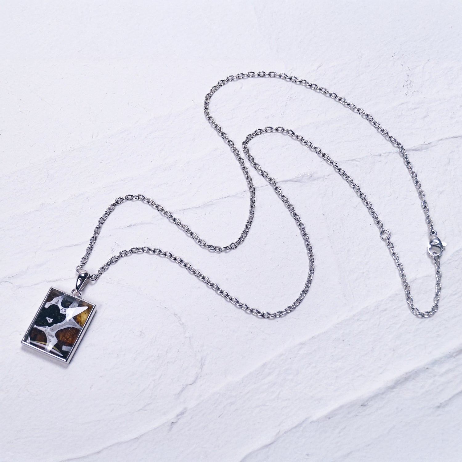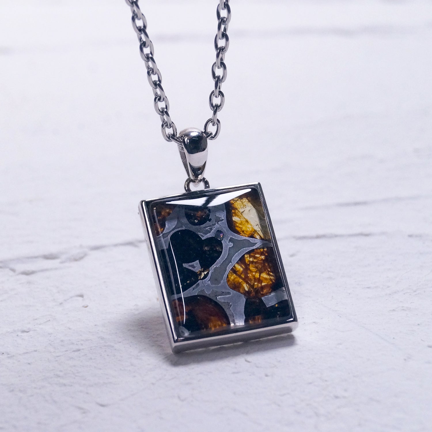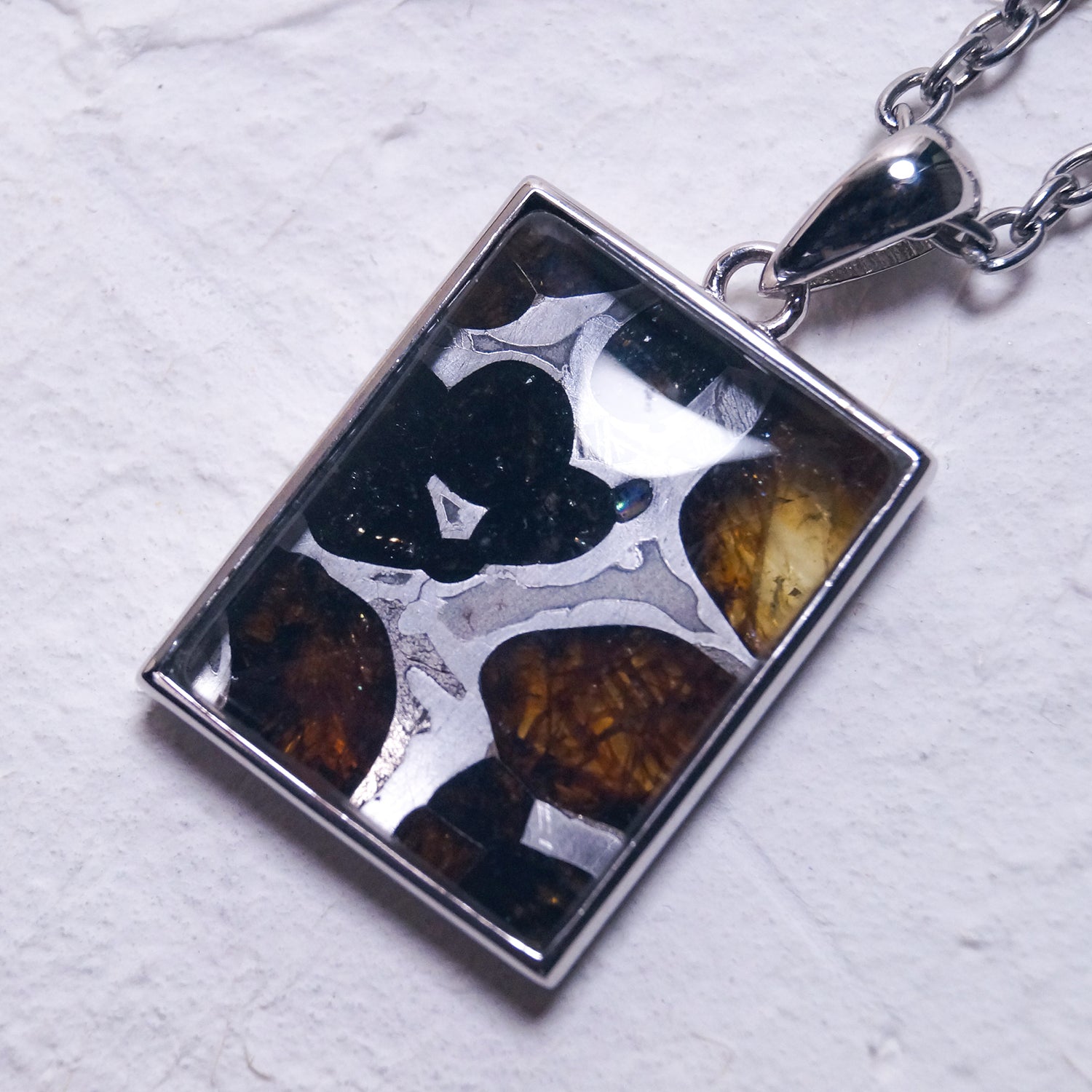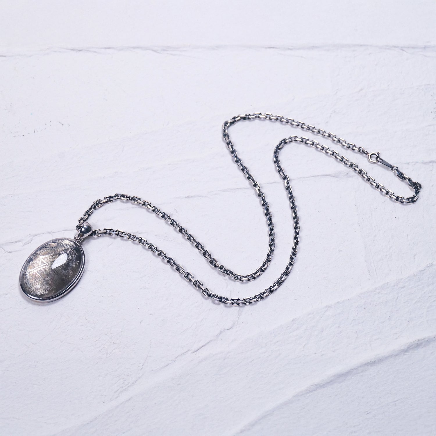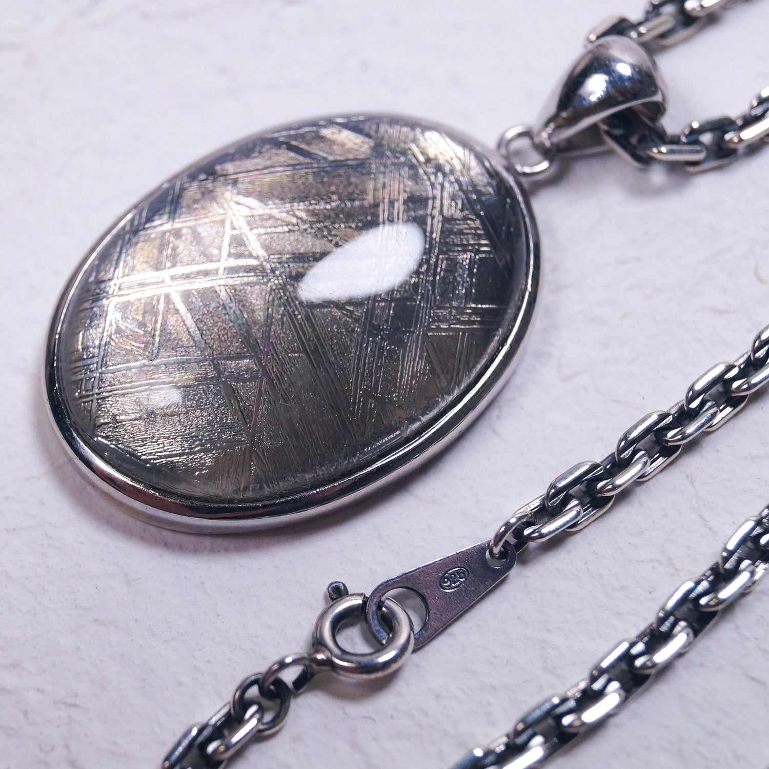 高級腕時計にも採用されているウィドマンシュテッテン構造と呼ばれる地球上にはない金属模様が美しい大ぶりペンダント(シルバーチェーン付き)