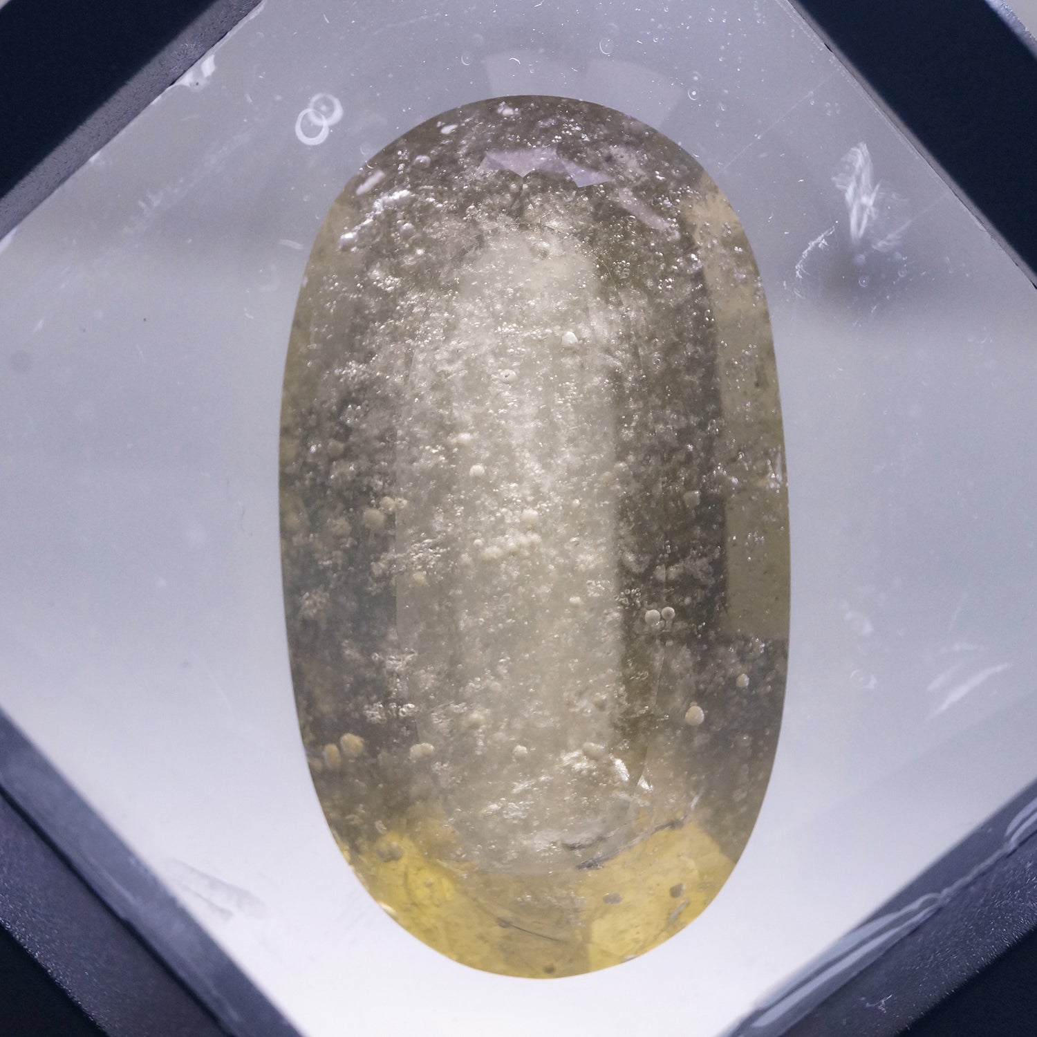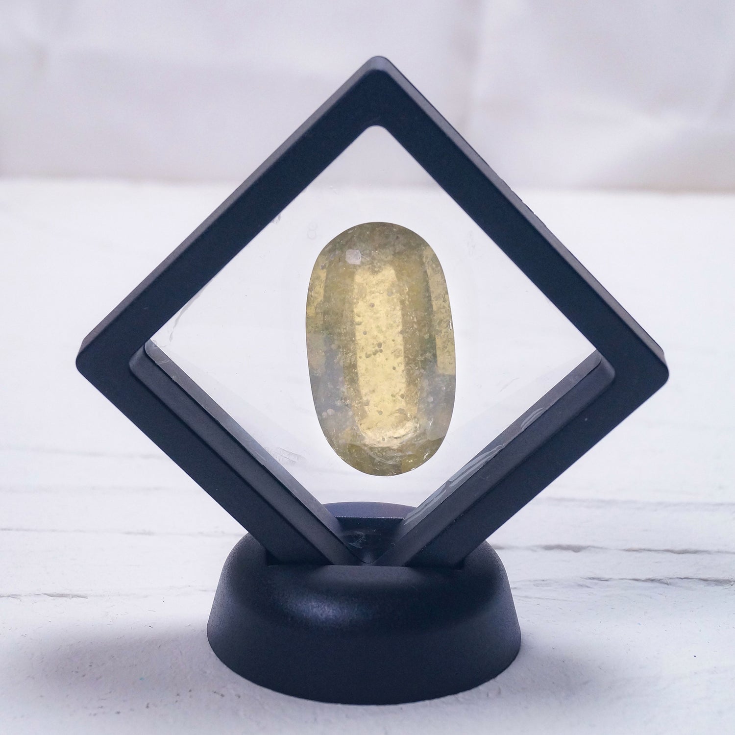 モルダバイトと同じくインパクトガラスと呼ばれる硝子質で通常地球上では生成できない。こちらは弊社所有の最大級のサイズで最も透明感のあるリビアングラスとなります。