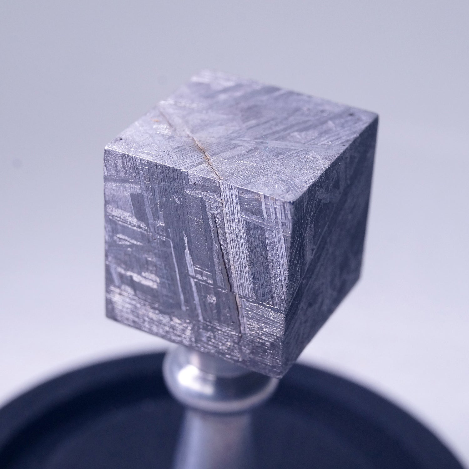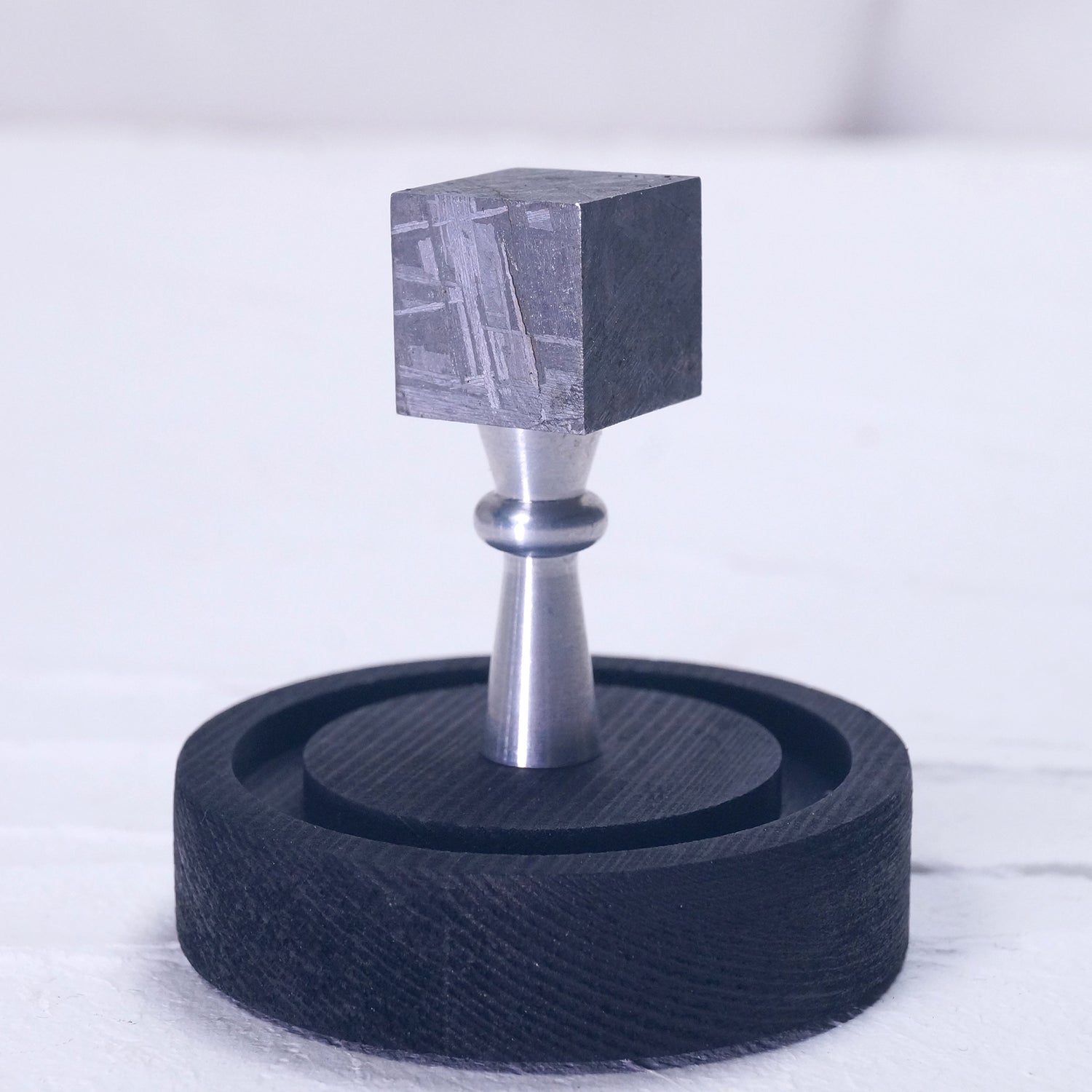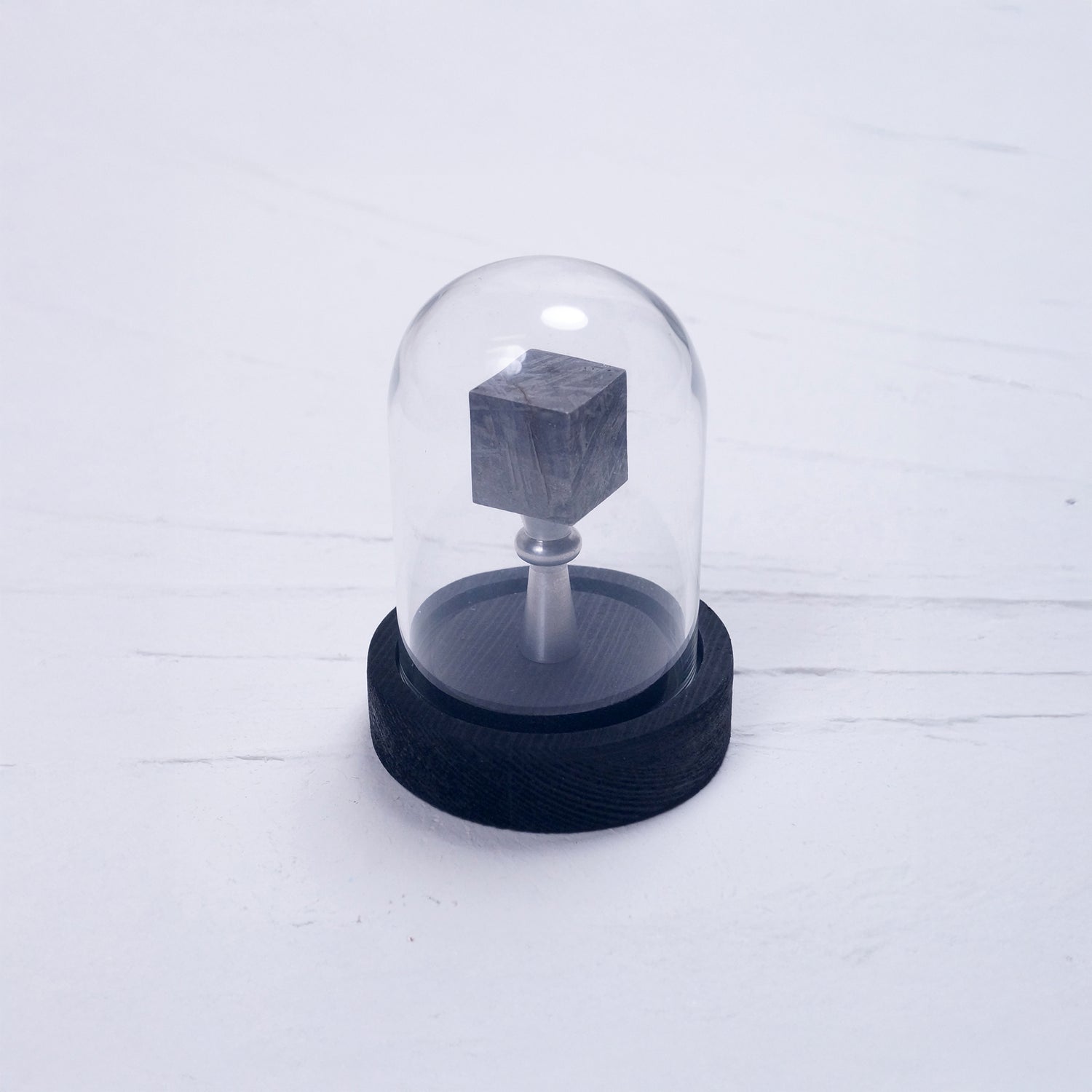 こちらは鉄隕石をキューブ状にカットした大変珍しいメテオライトの置物で、マグネット付きの容器に収められています。