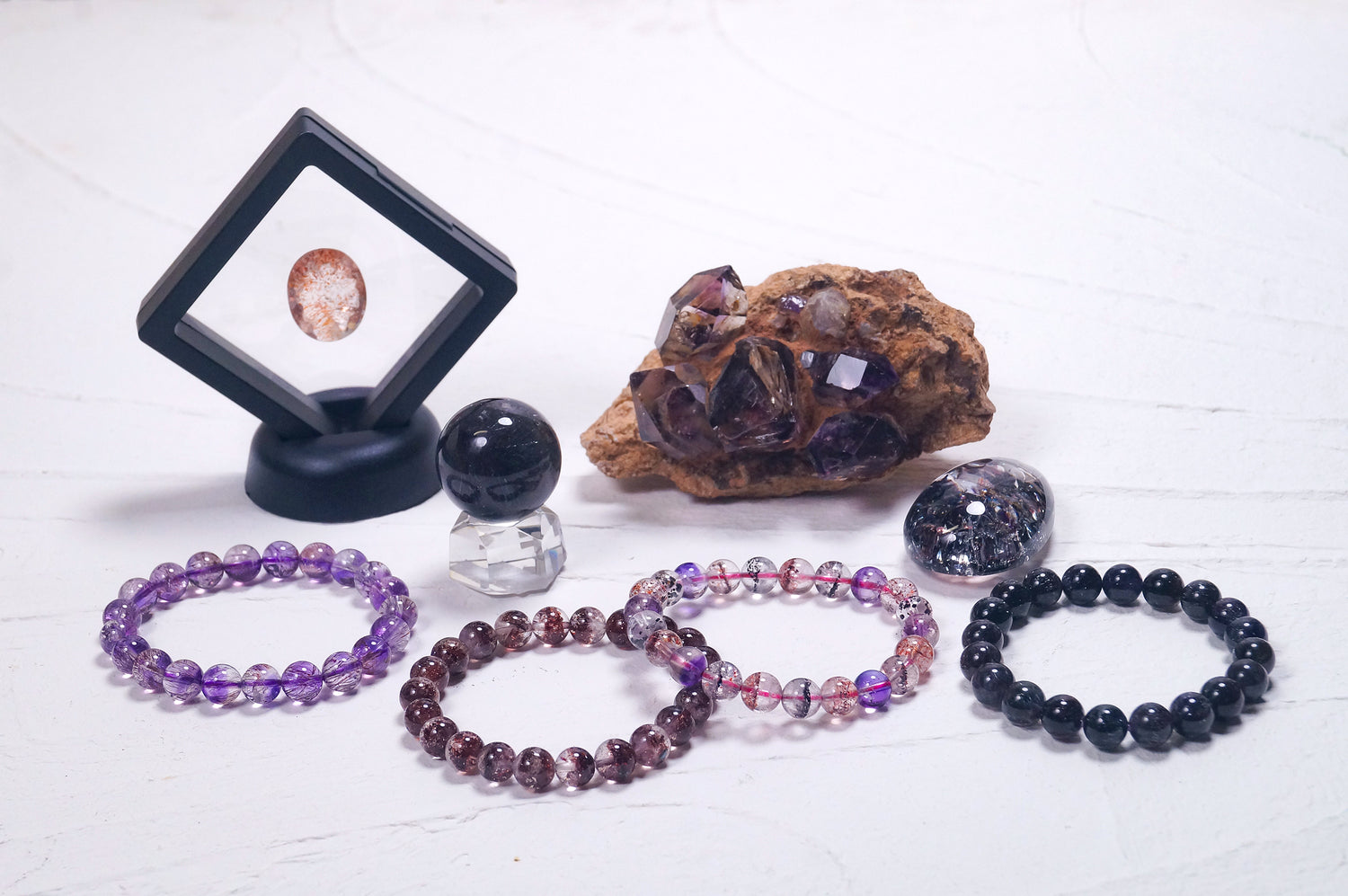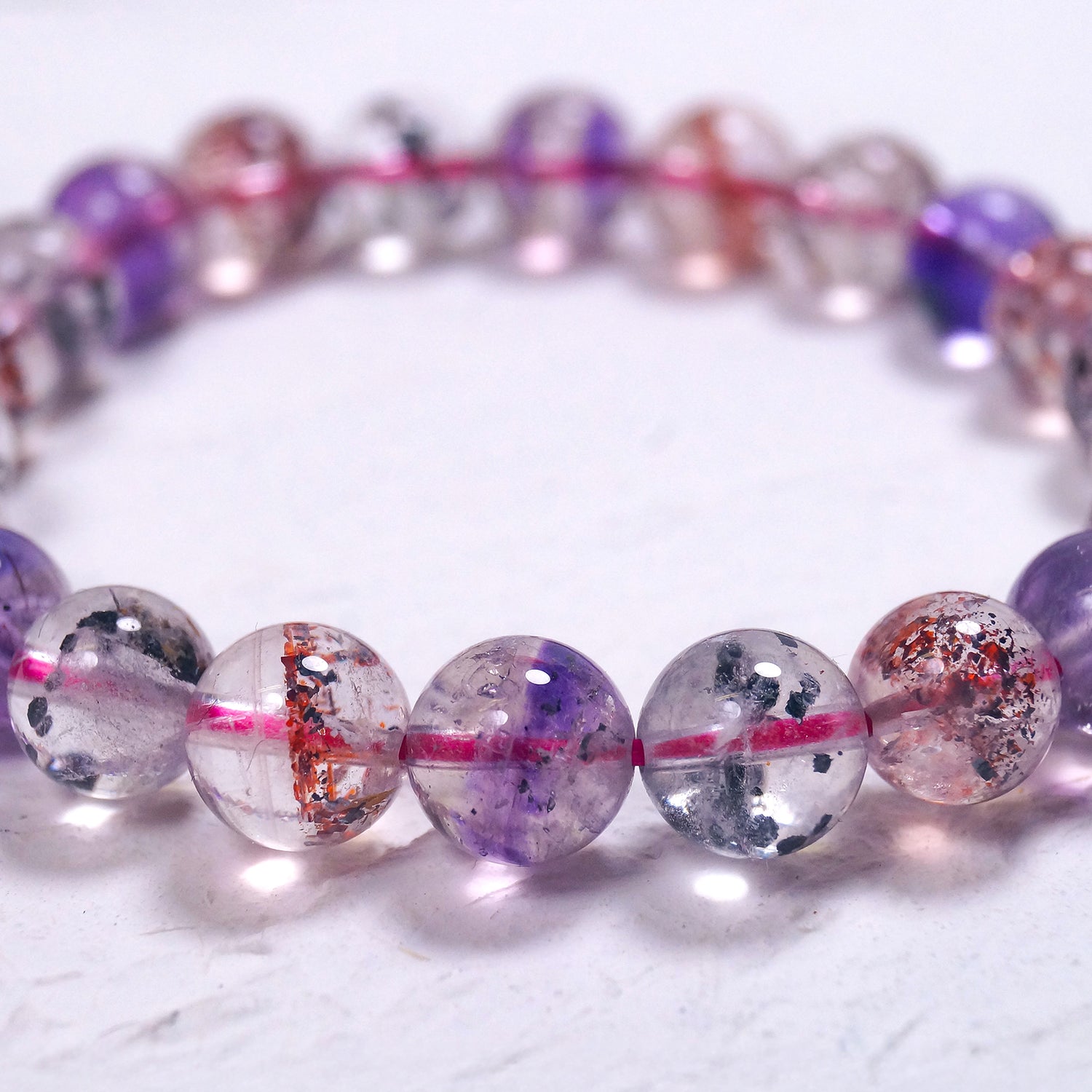 ファントム状に見える内包物のスーパーセブンビーズを集めた、希少性と個性を兼ね備えたブレスです。
