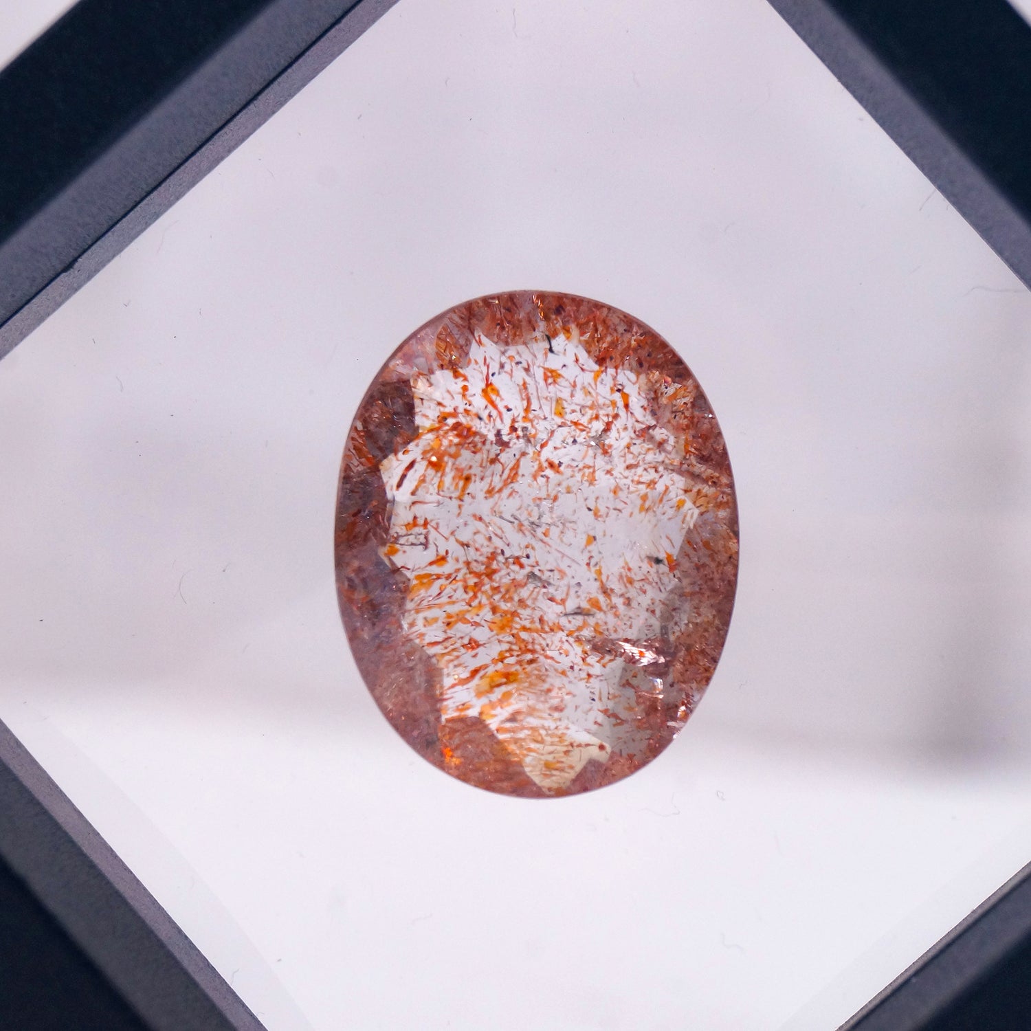 赤色のレピドクロサイトがまさに炎にように内包されたクオーツ、しかも密度が濃く非常に良いバランスで入っている近年少なくなってきたタイプです。
