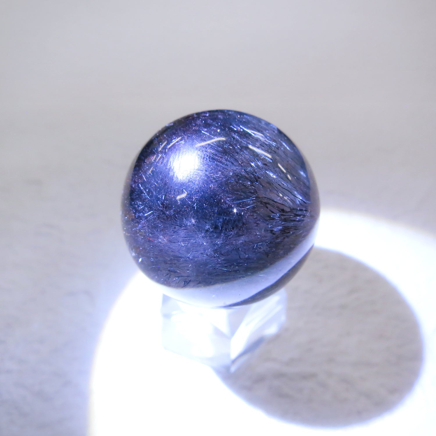 別名ライトニングクオーツとも呼ばれる煌めきは針状のヘマタイトに光が反射したもの、漆黒のクォーツ内に万遍なく針が詰まっておりどの方向から見ても煌めく極上品です。