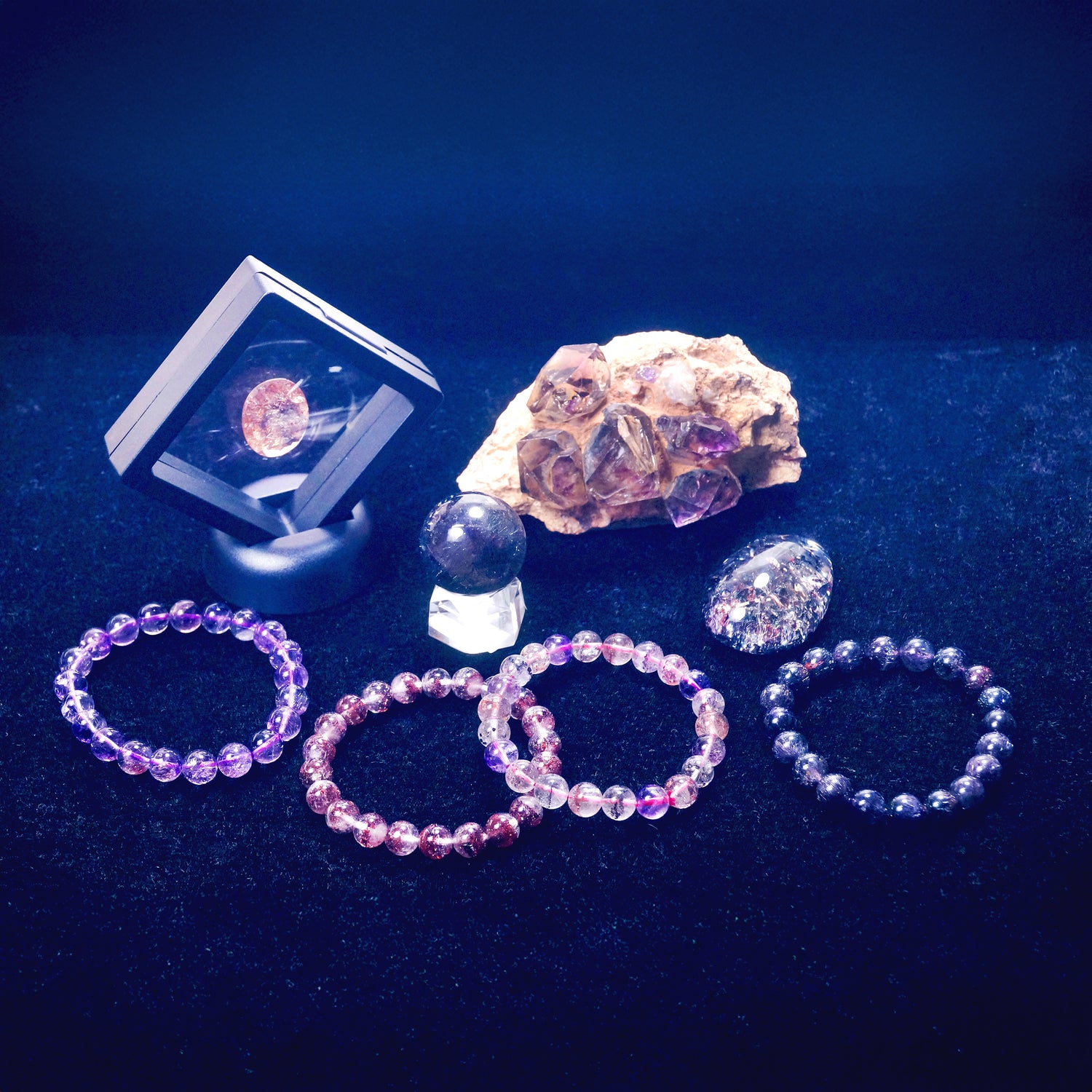 7つの鉱物が一同に会するとされる”スーパーセブン”その成長過程がまさに奇跡であり最強のスピリチュアルストーンと呼ばれる所以です。そんなスーパーセブンの中でも人気のレピドクロサイト・ゲーサイトを中心に内包するストーンをすべてのカラーバリエーションで集めた、奇跡も訪れかねない贅沢なコレクターズセットです。