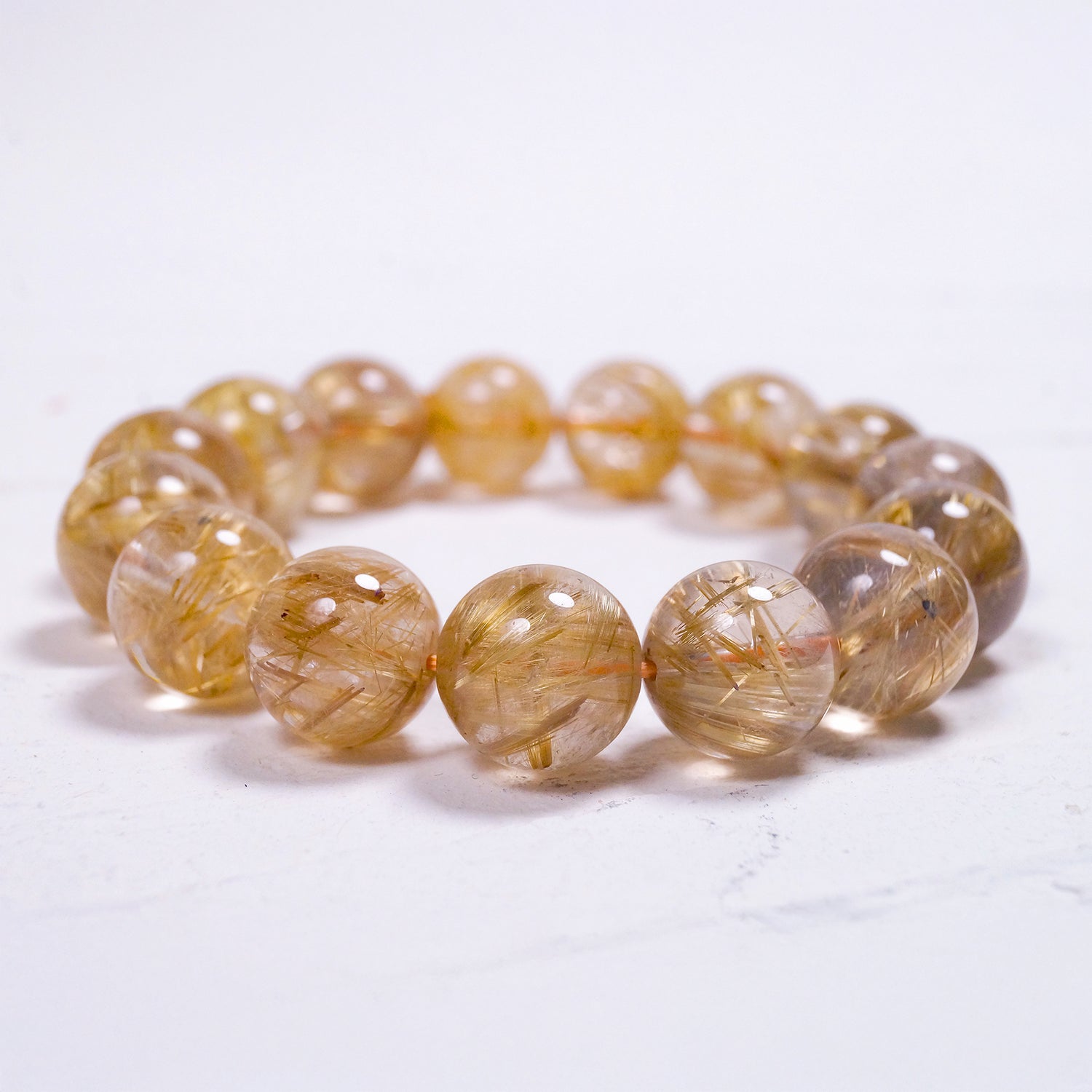 4.5A 大玉ゴールドルチル ブレスレット 15mm 内径18cm 産地:ブラジル