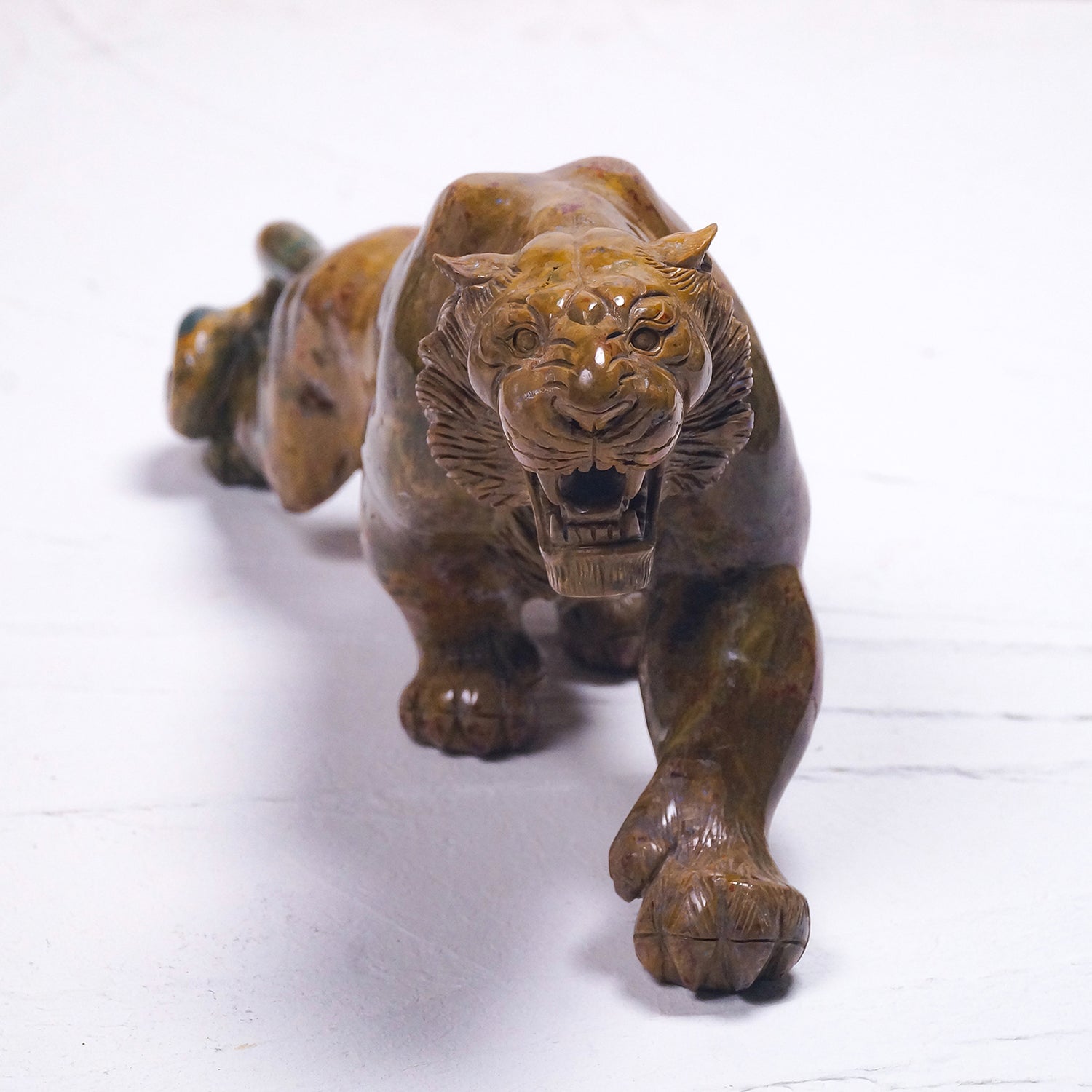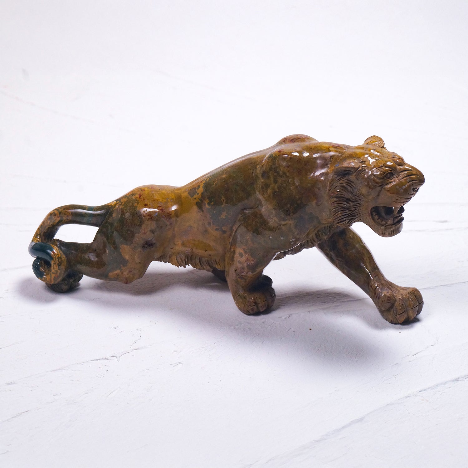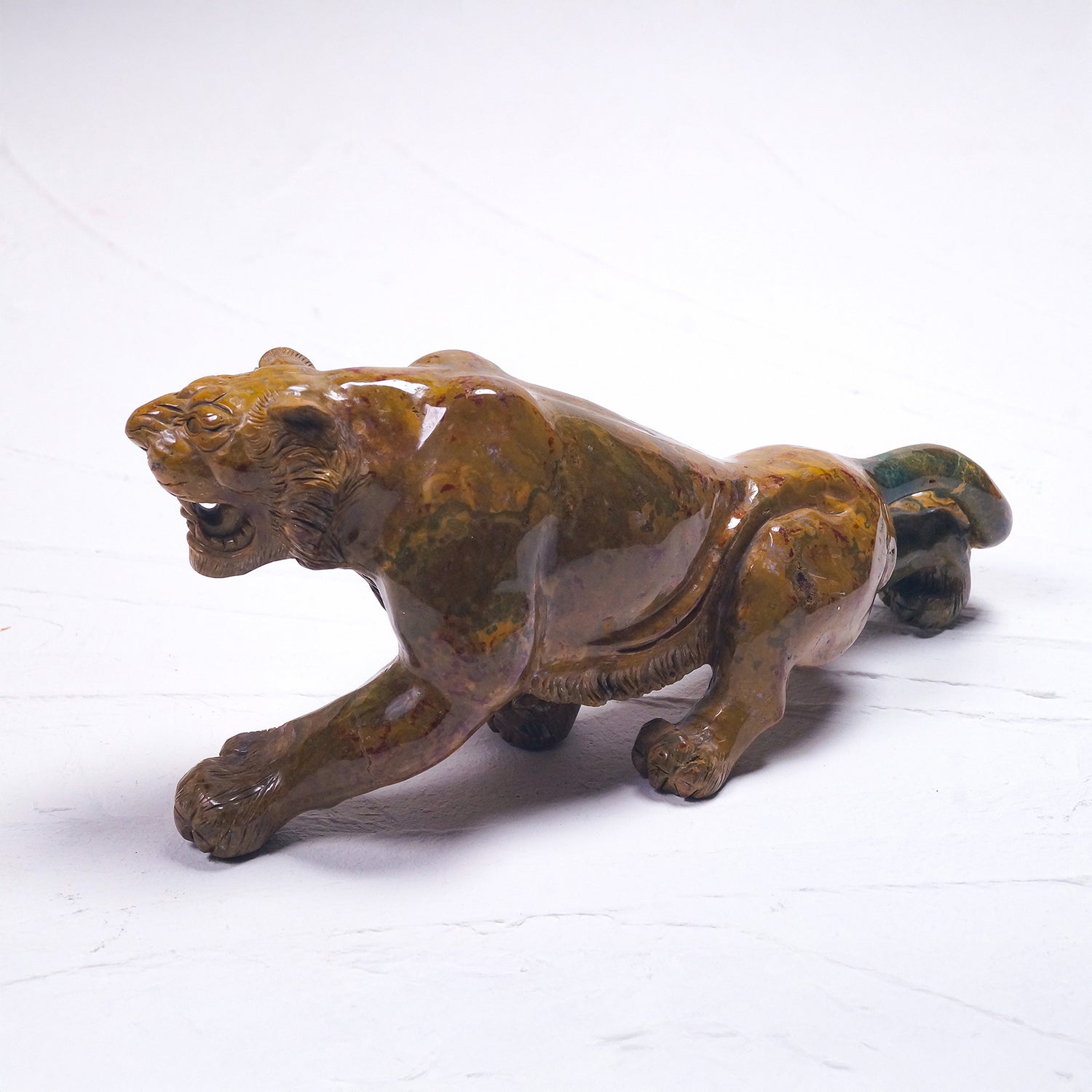 オーシャンジャスパーはビジネスの成功をもたらすとされ、邪悪な物を寄せ付けない強固な虎の表情としなやかな体躯がたいへん魅力的な美品です。