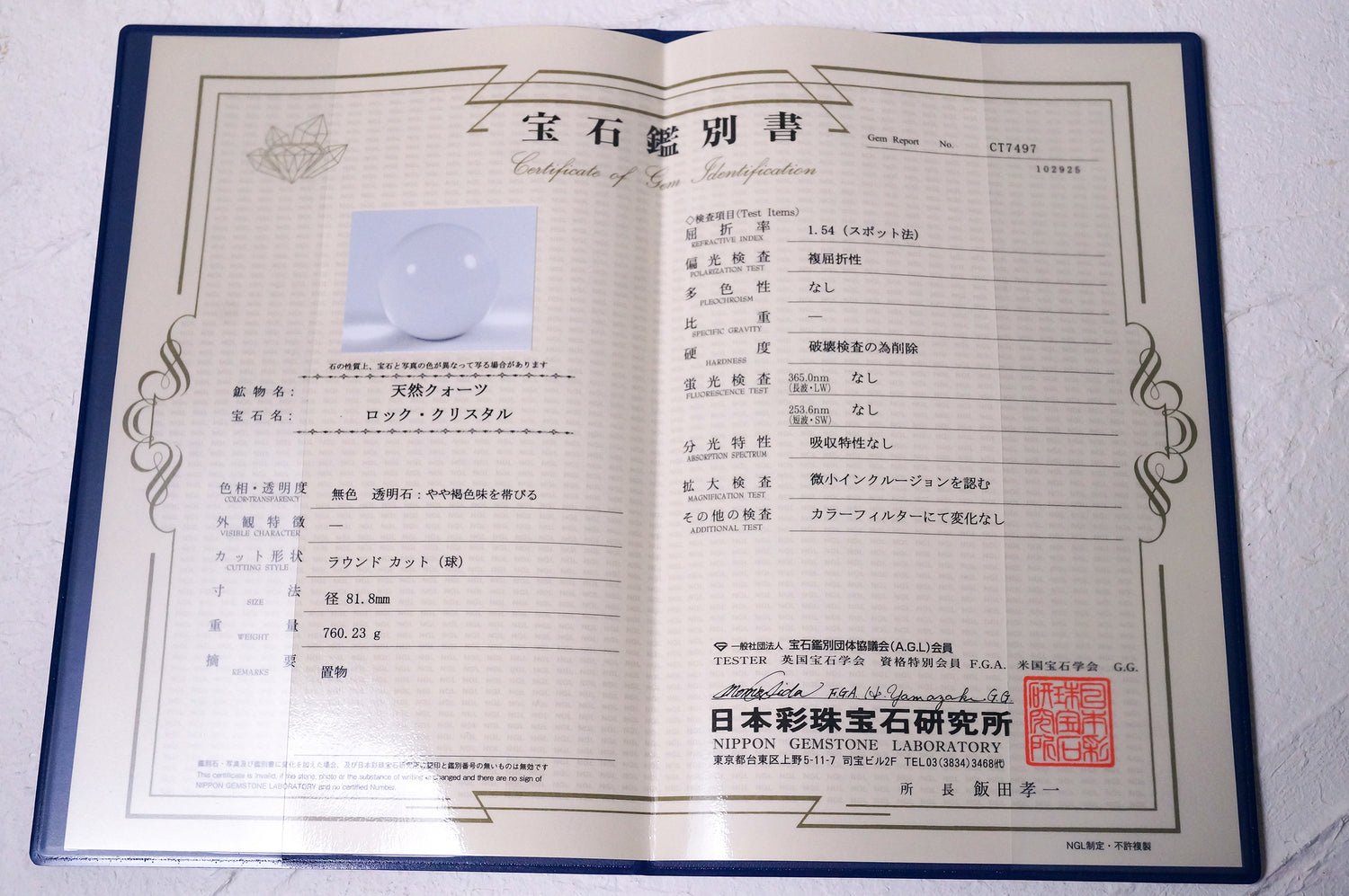 2.特大 無垢水晶球 82mm(鑑別書付) 産地:ブラジル