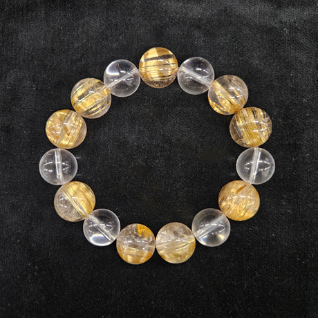 【一点もの】ゴールドルチル×水晶 14mm×13mm ブレスレット