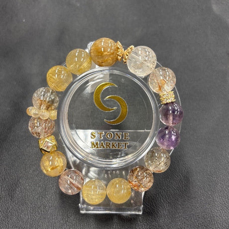 ルチルマイカアメジストブレスレット 内径約16cm ルース約11mm 【会長秘蔵コレクション】<0100>
