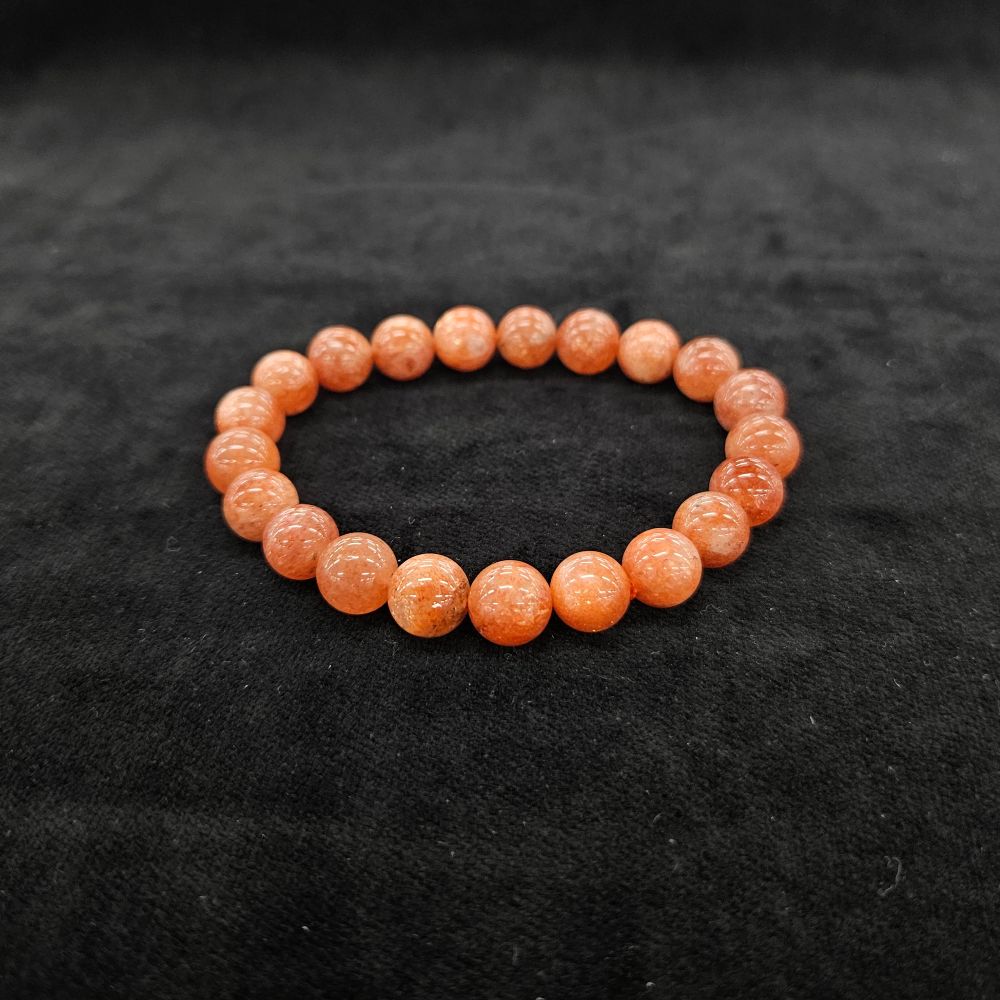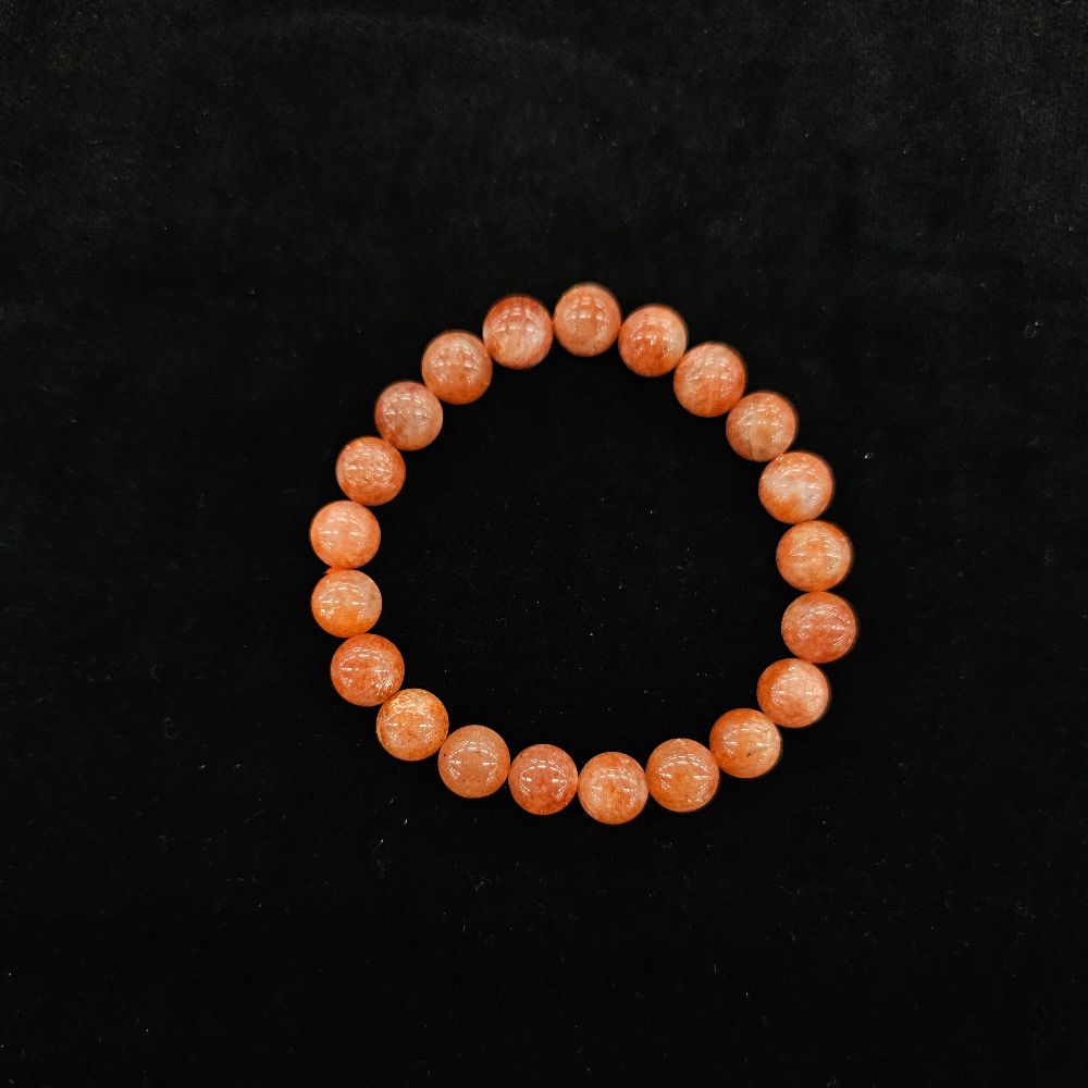 太陽のような温もりを宿す天然石「サンストーン」をあしらったブレスレットです。